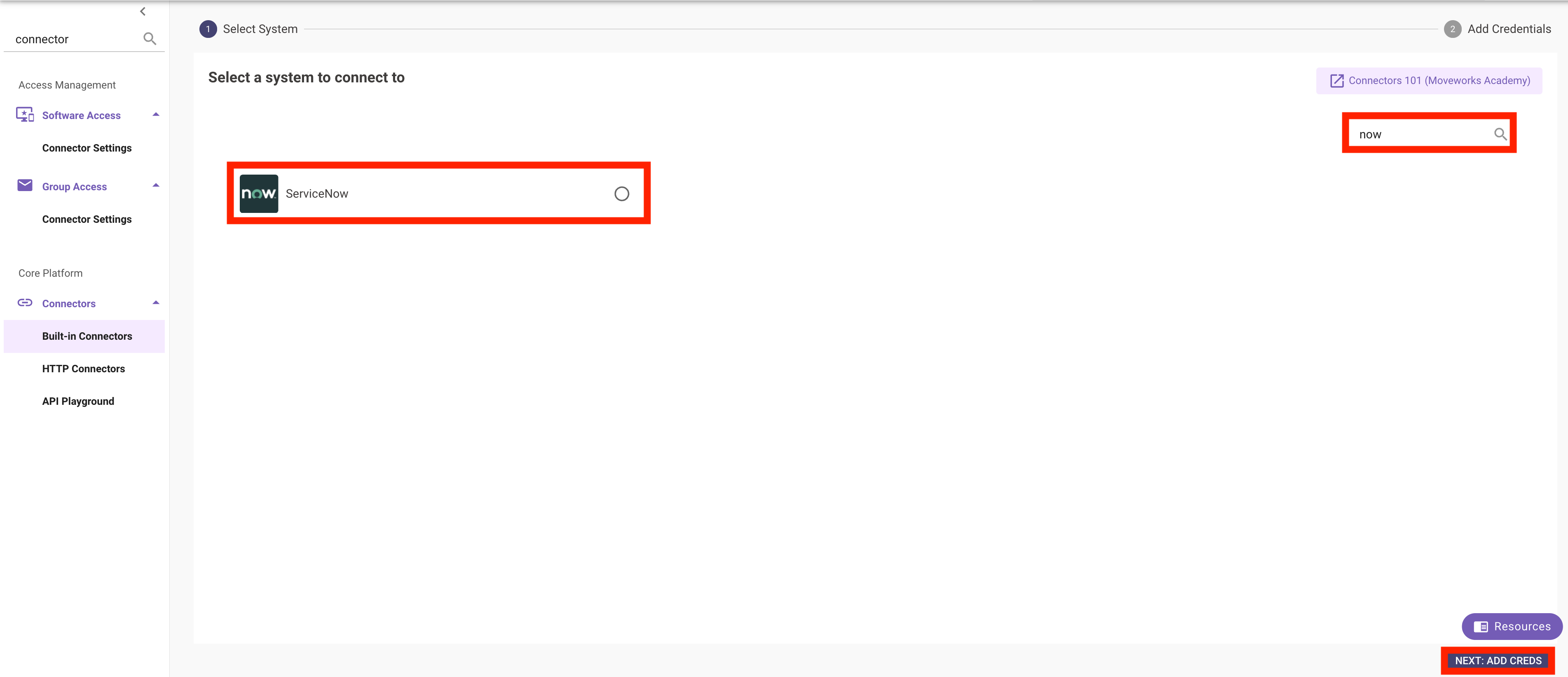 Connectors > Built-in Connectorsin Moveworks Setup - Click