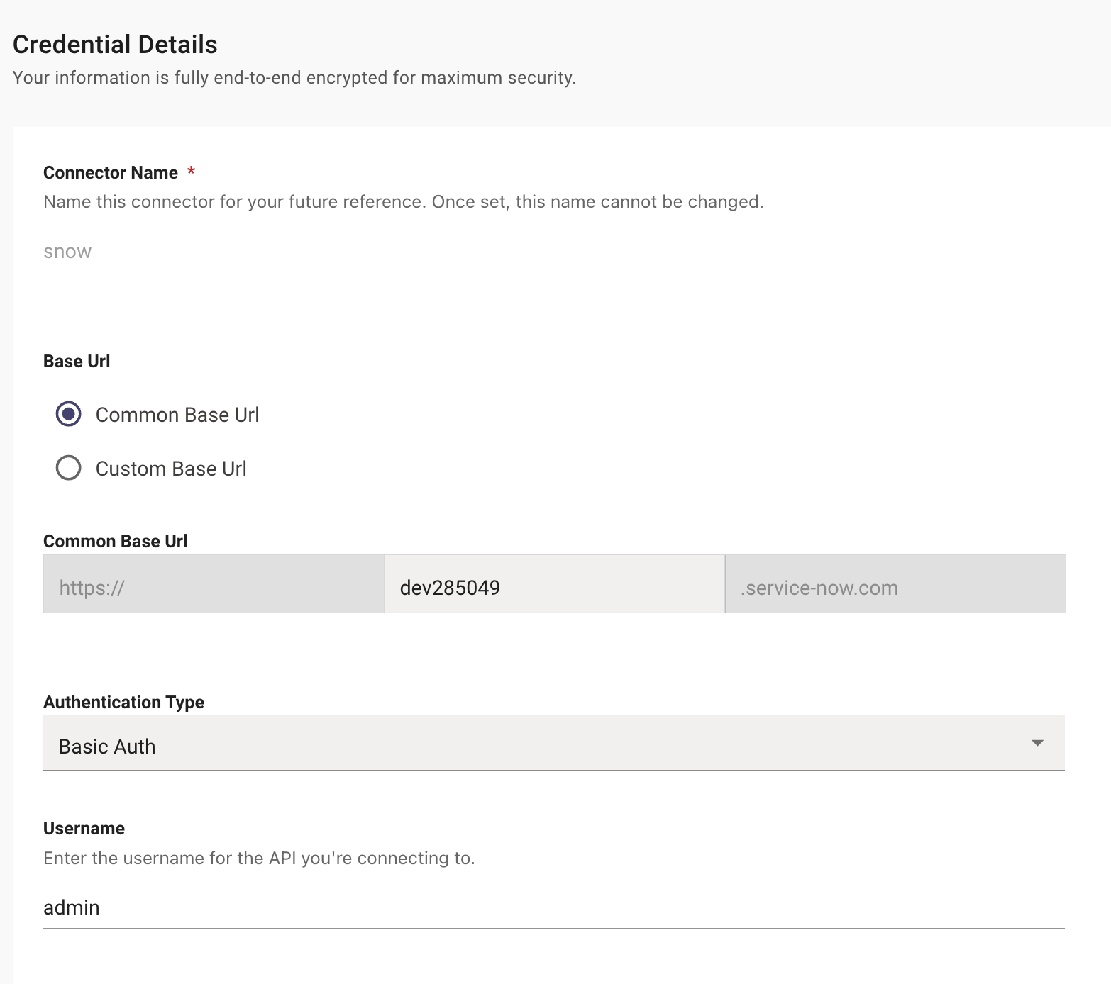 snow)- Common Base URL: Your PDI instance (ex.