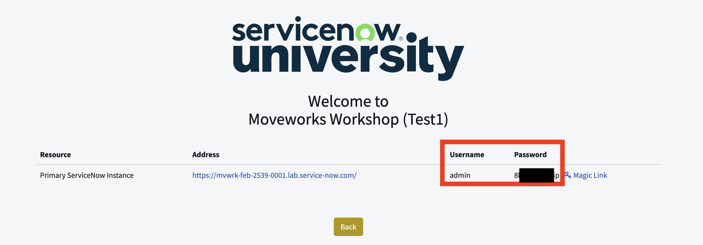 - You can find the admin password on the page you were brought to after signing up for your student instance in Lab 0, as shown in the below screenshot