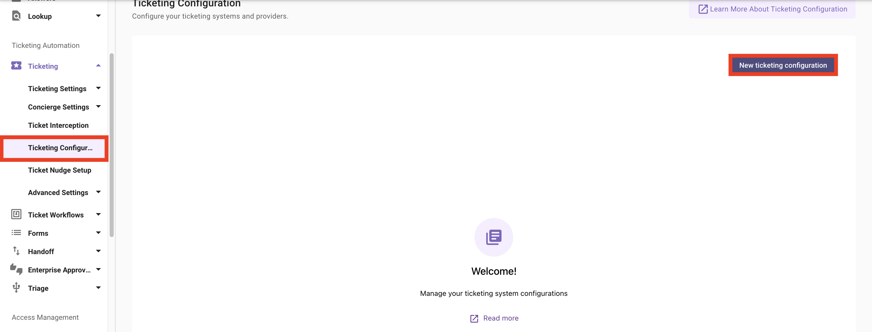 Ticketing > Ticketing Configuration > New ticketing configuration
