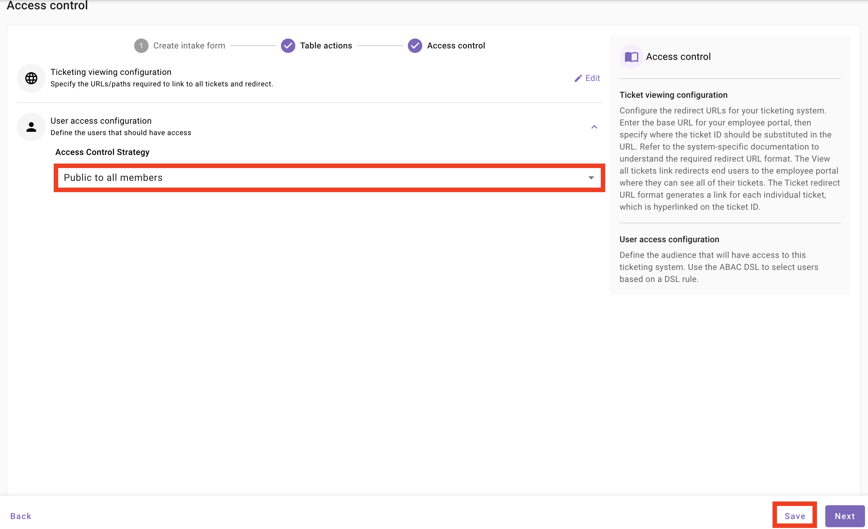 Access Control Strategyis set toPublic to all members, andSaveyour configuration