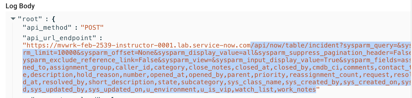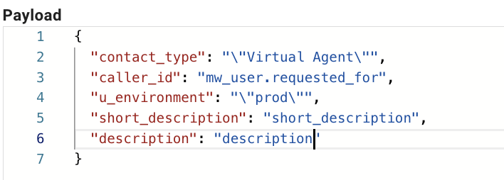 Createand add the fieldu_environmentwith the valueprod, as shown below:"custom_data.u_environment": "\"prod\""