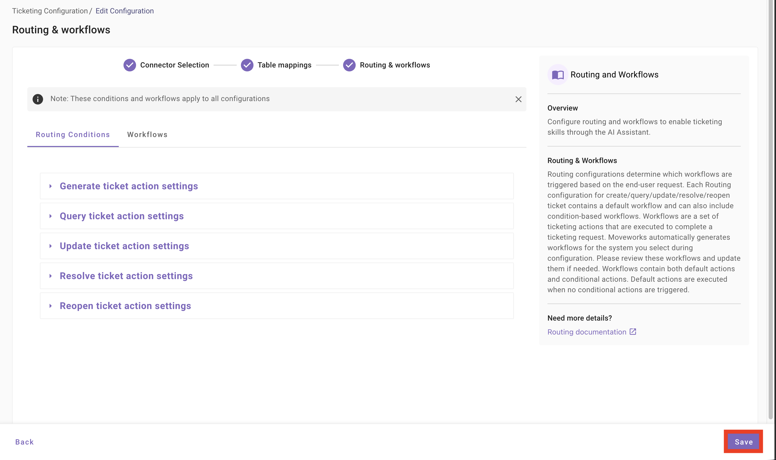 Next, review the Routing & Workflow conditions (no updates needed at this time) and thenSave
