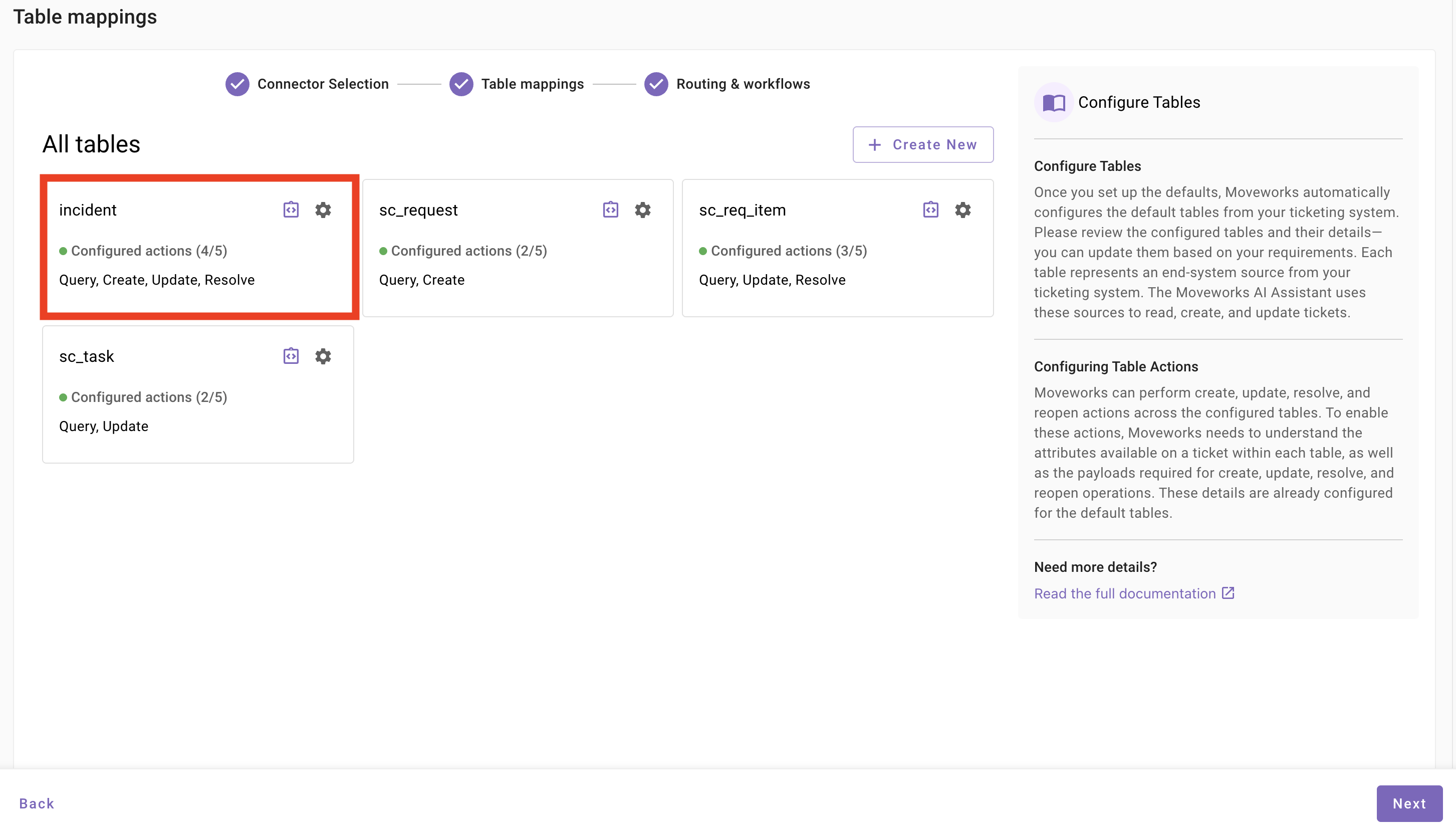 - Table Mappings: The configuration that tells Moveworks which tables to interact with (e.g.,