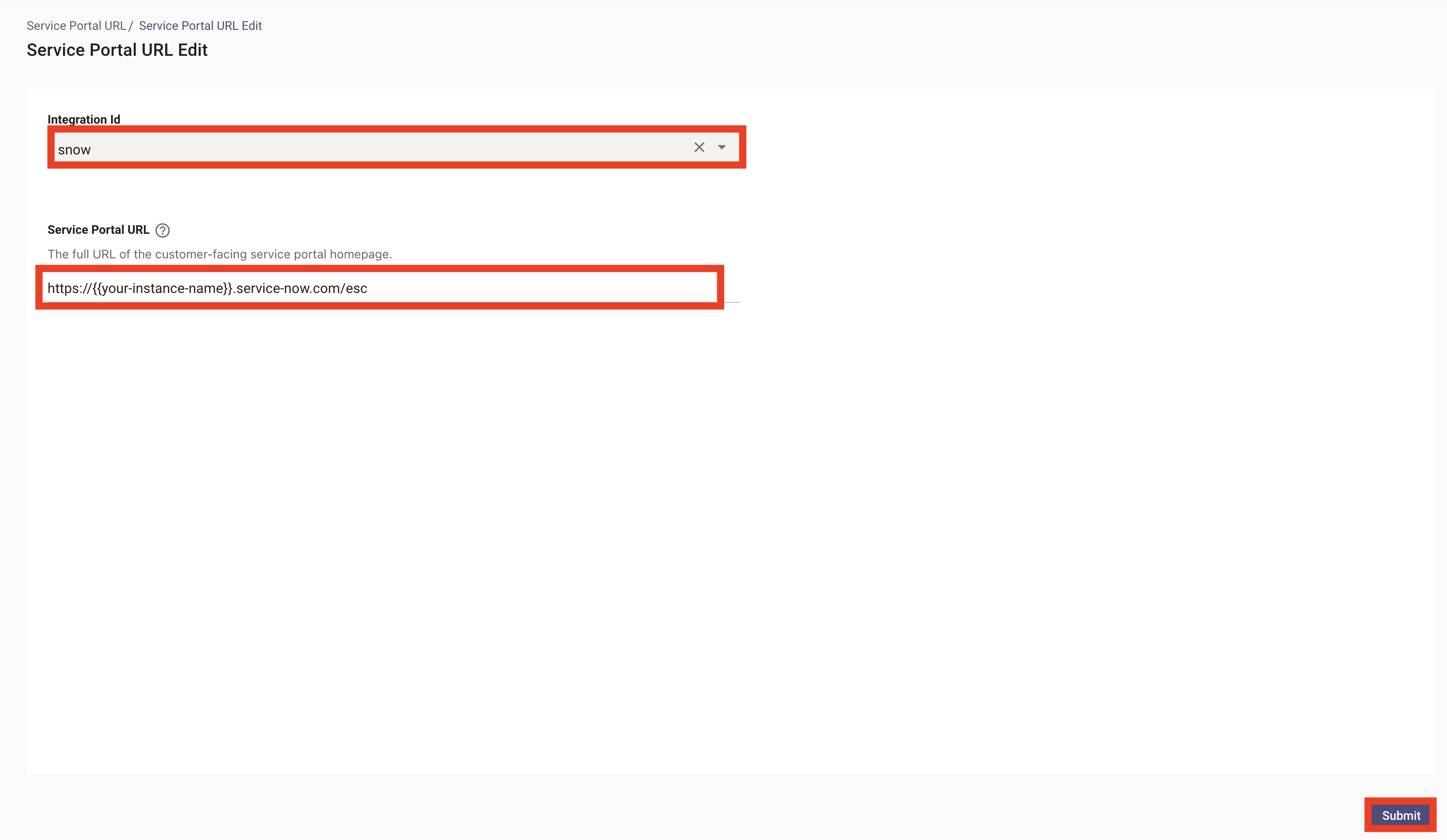 - Service Portal URL: The base web address of your ITSM portal. Moveworks appends ticket IDs to this URL to provide users with direct “View in Portal” links.