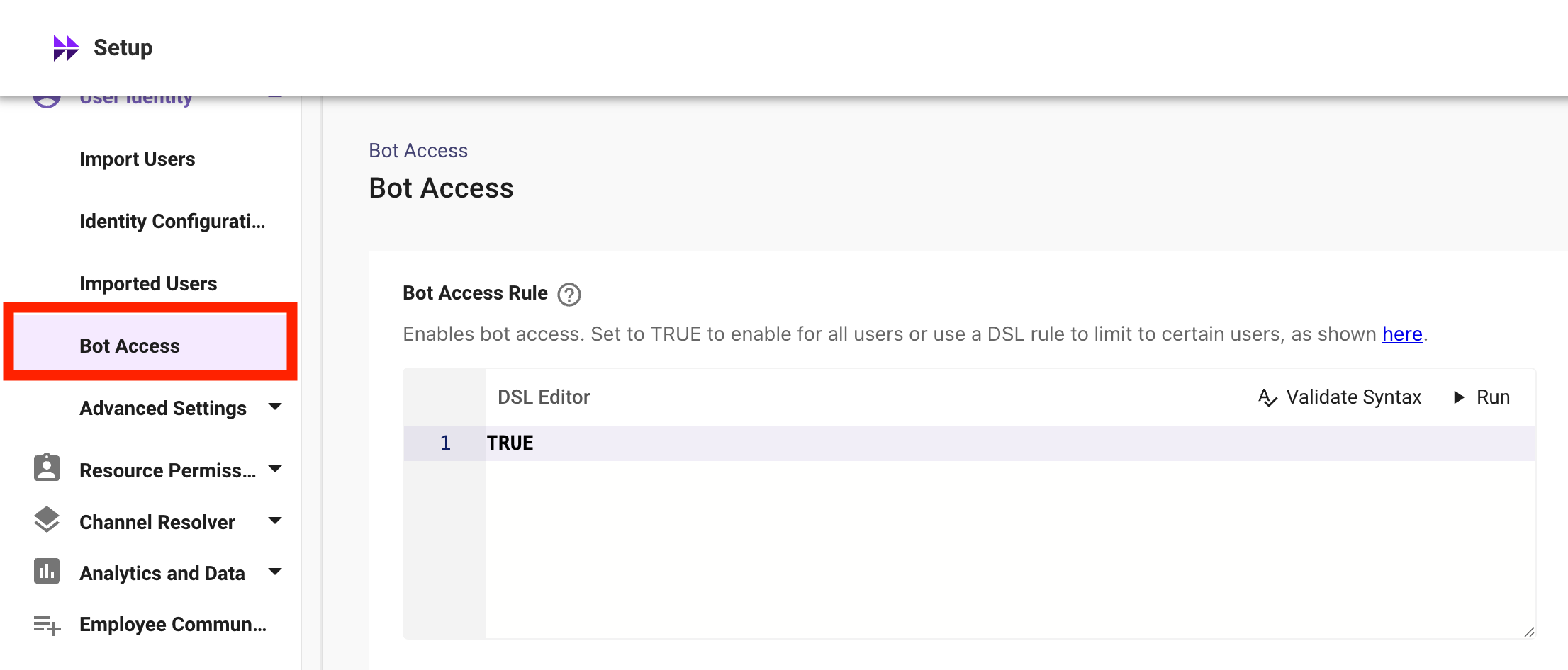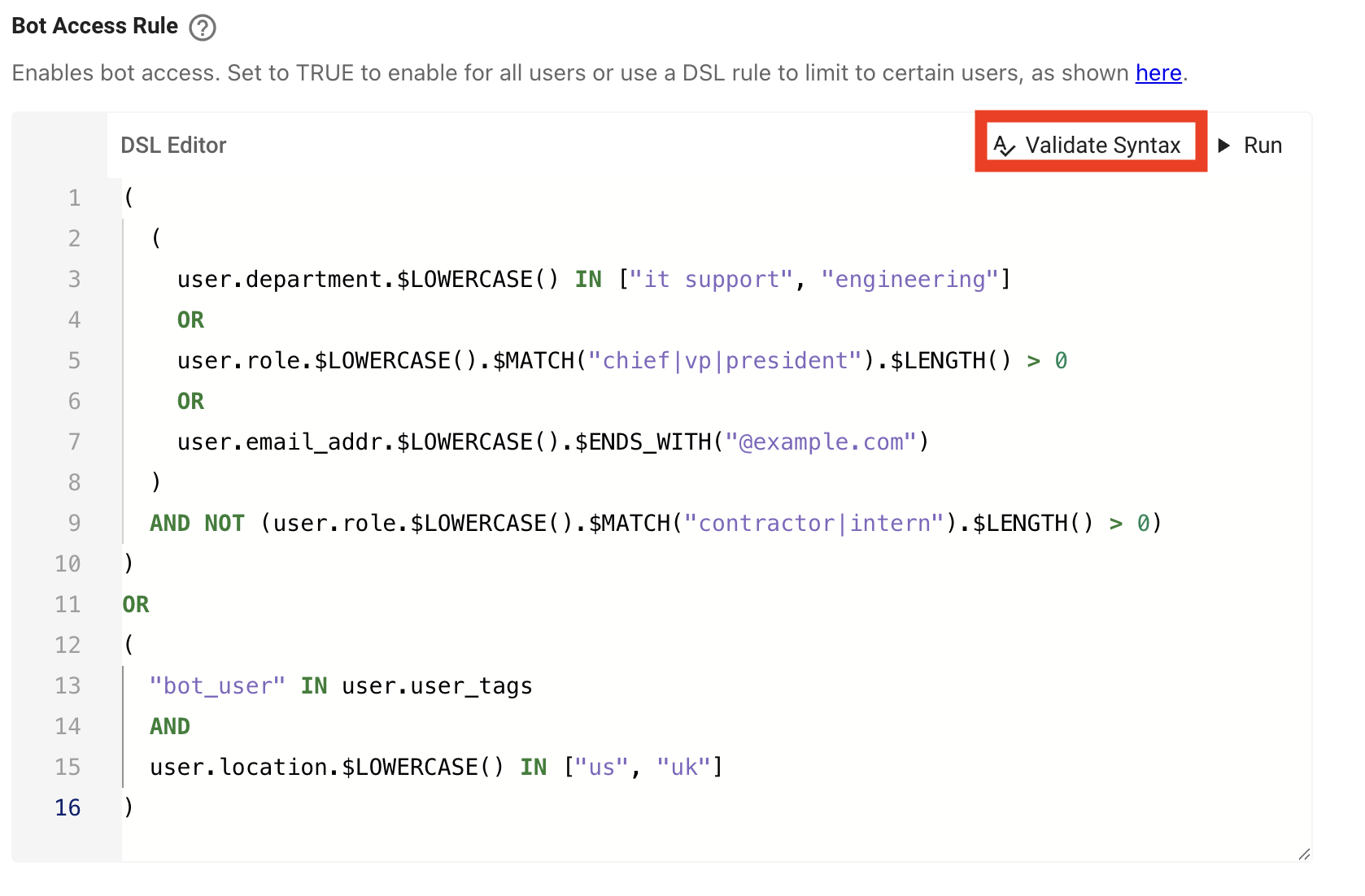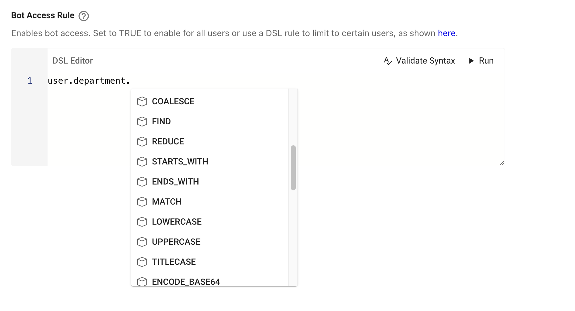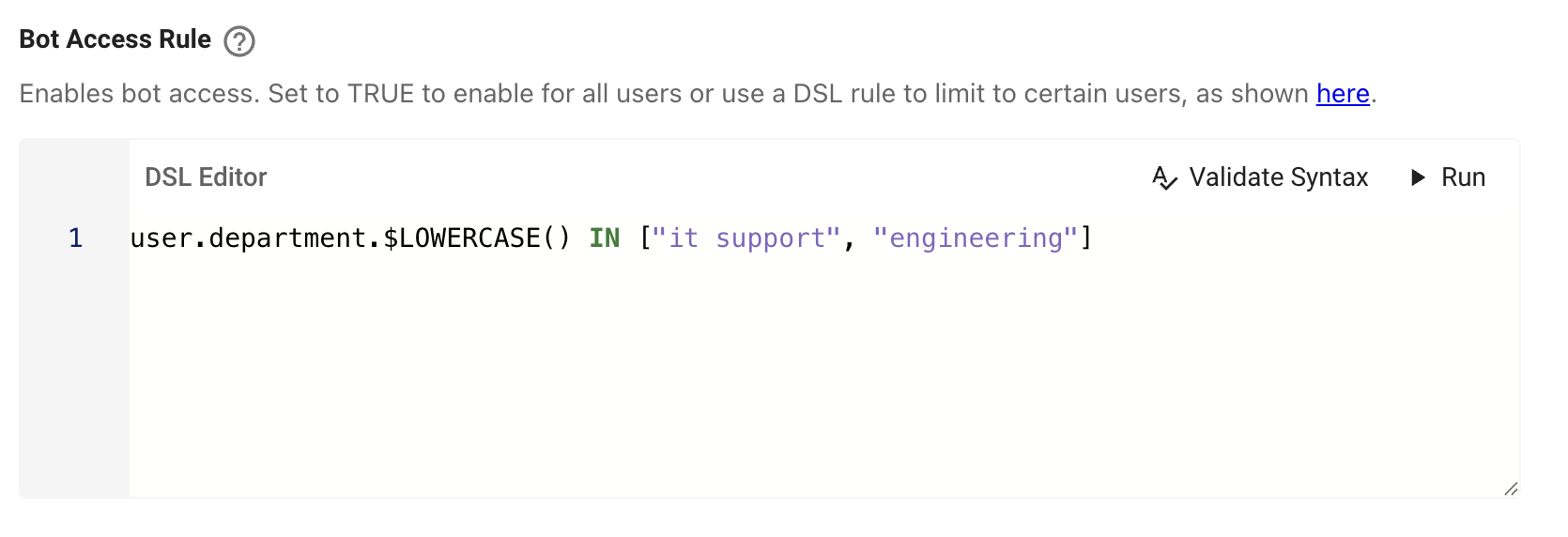 - Navigate to the Bot Access Rule to see an example of a Moveworks DSL block we have already leveraged