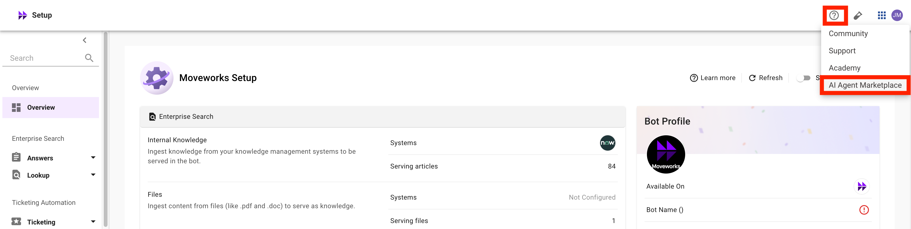 - Navigate to Moveworks Agent Marketplace by clicking the