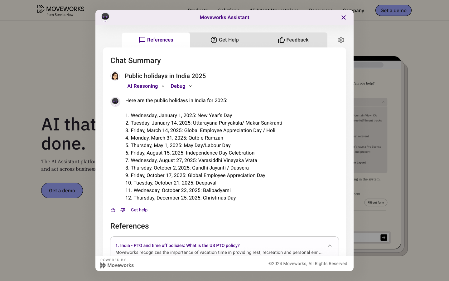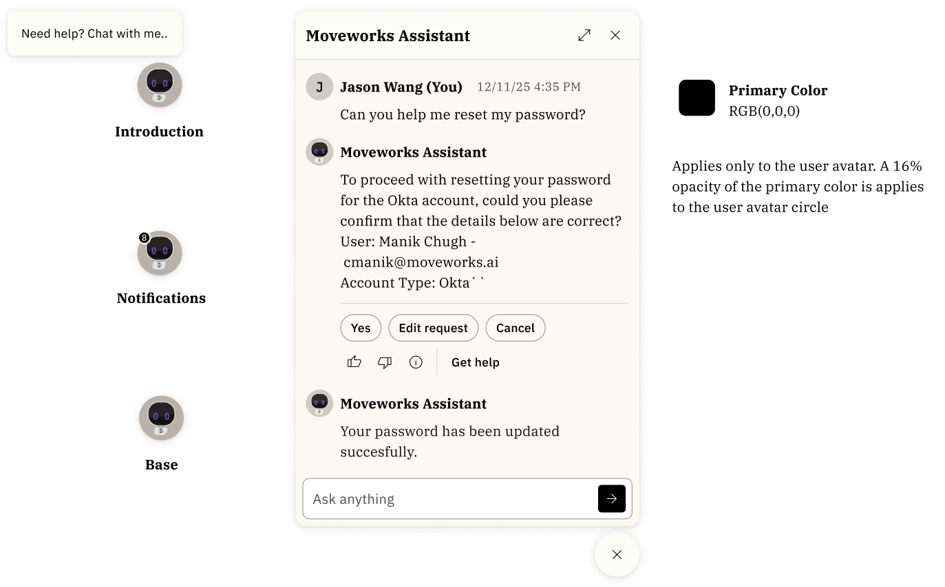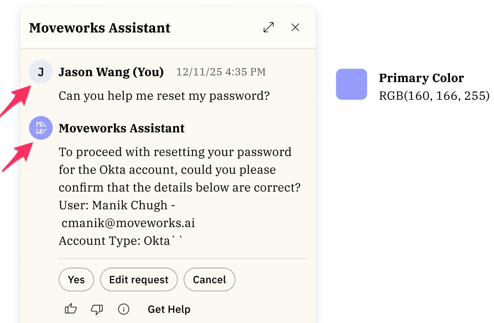 Moveworks is rolling out a refreshed visual identity across all product surfaces, including Assistant on Web and the Embedded AI Assistant. This update introduces our new color system, typography, and UI treatments for a more modern, unified Moveworks experience.