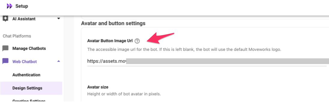 - Expand the "Avatar Button Image Url" section