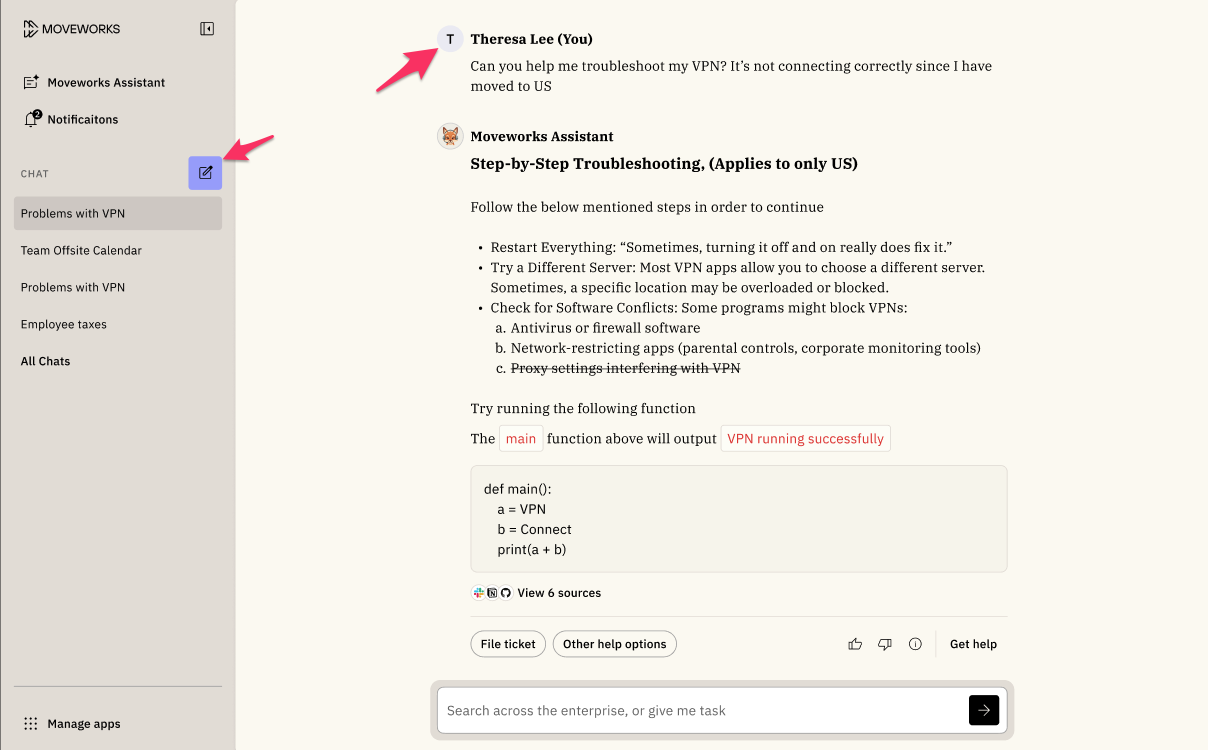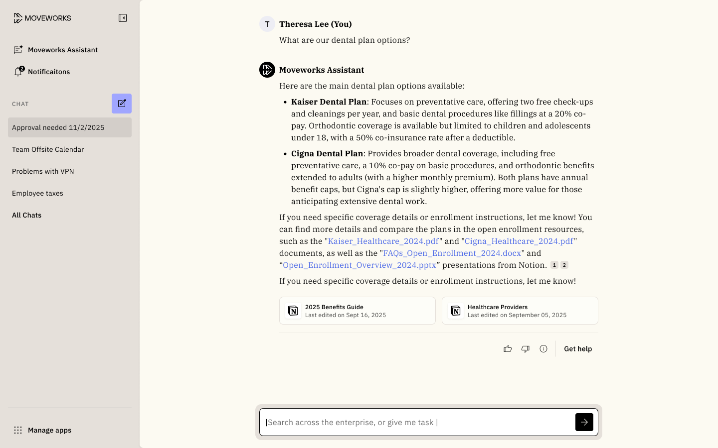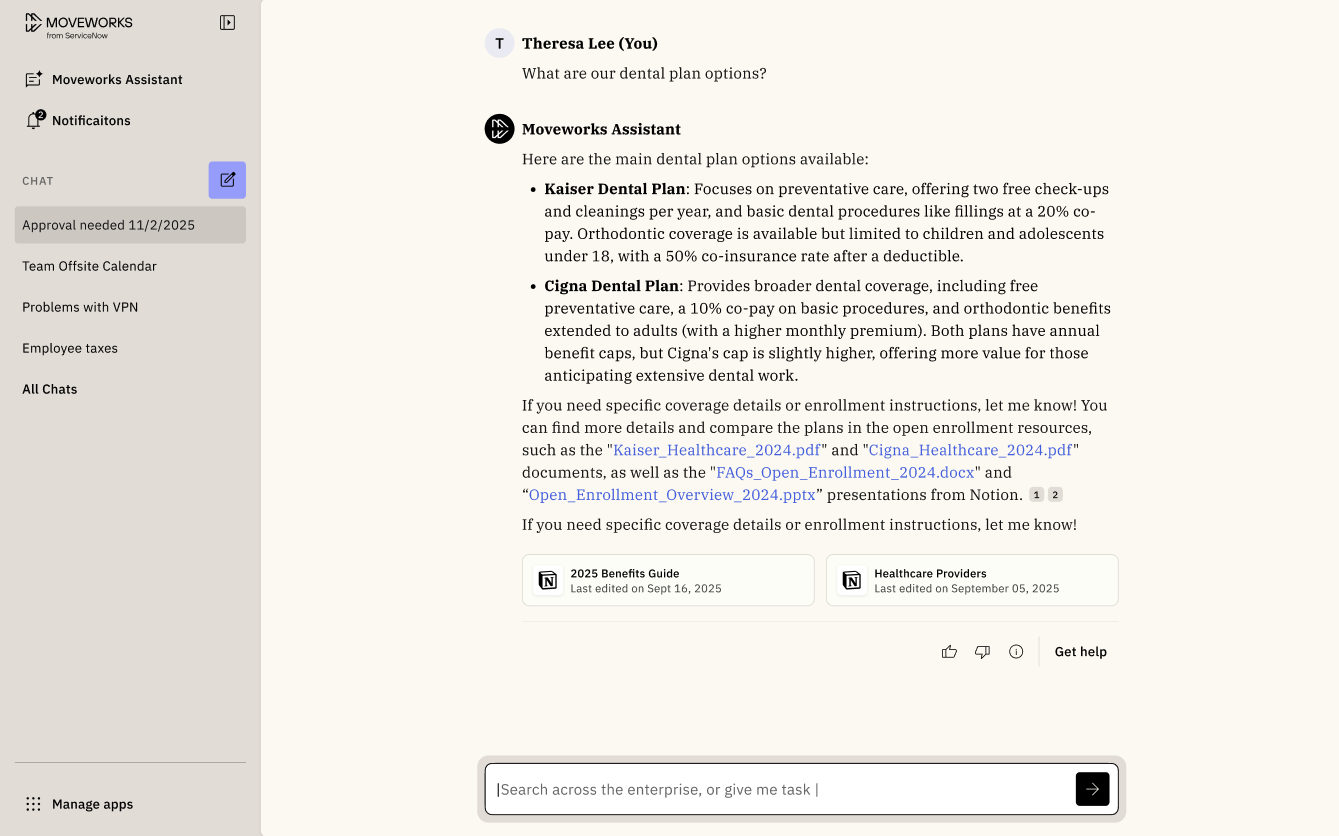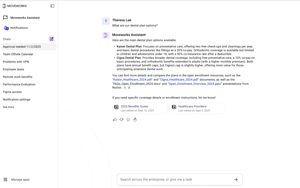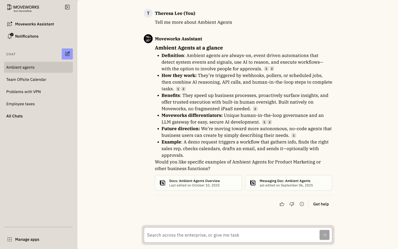 Assistant on Web gives employees a modern, fully featured Moveworks Assistant directly in the browser.