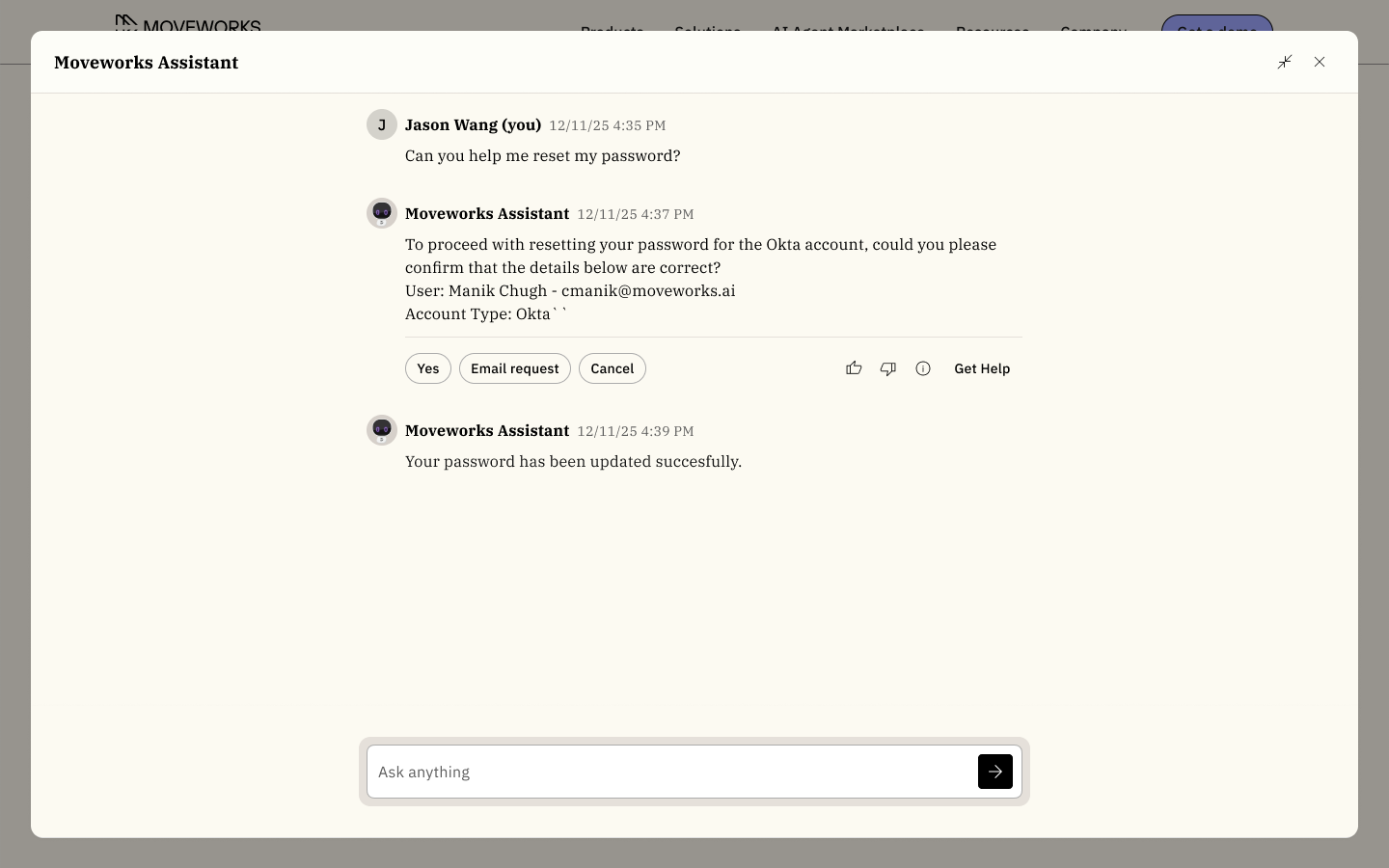Embedded Assistant will also reflect the updated Moveworks branding for a more cohesive user experience.