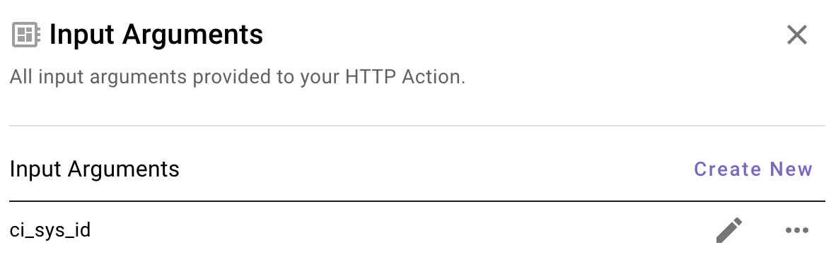 Now navigate to “Input Args” - you should see that the ci_name variable has been detected in the API call and is of type “string” which is correct. In order to properly test that the action has been set up correctly, we can provide example values and test the call before publishing.
