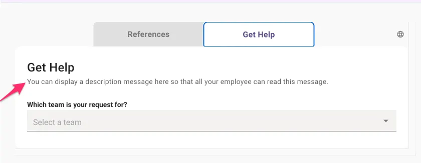 Description for “Get Help” Section - Provide the text for the new field. A maximum of 25 characters is supported.