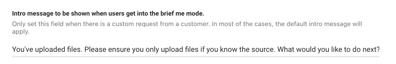 Intro message to be shown when users get into the brief me mode. - Provide the text for the new field. A maximum of 25 characters is supported.