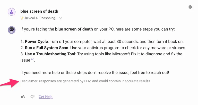 - Add an AI disclaimer message that’s shown as an intro to the user.