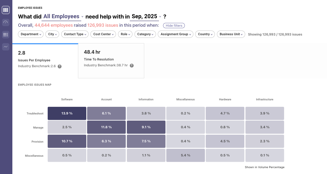 Now Navigate to the Employee Experience Insights Dashboard and here you will now start to see the populated tickets and data within EXI.