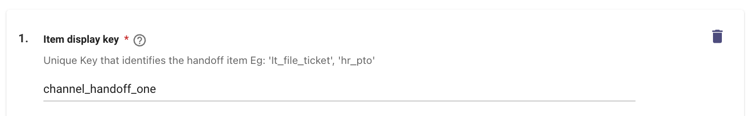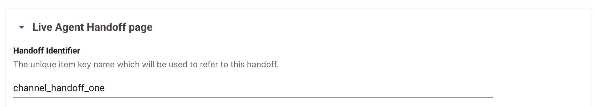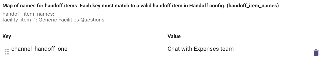 Add an item Config with an Item display key that matches the Handoff Identifier from step 3 in the "Live Agent Handoff" section above.