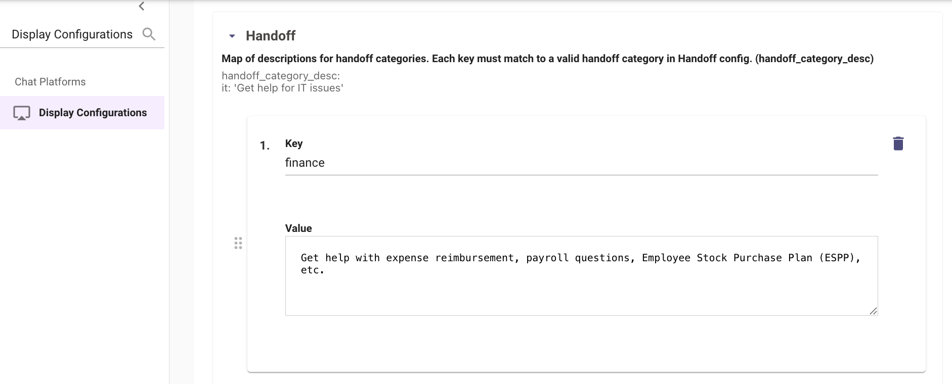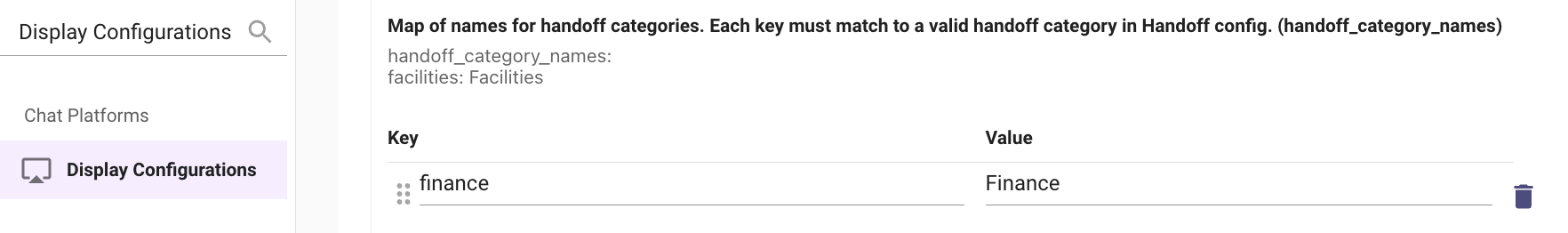 Go to Chat Platforms > Display Configurations > Handoff.