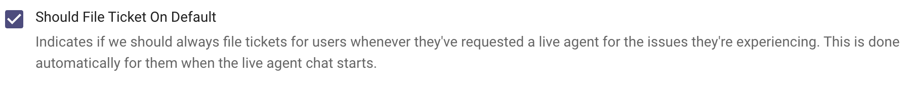 If a ticket should be filed when an live agent handoff occurs, select Should File Ticket On Default.