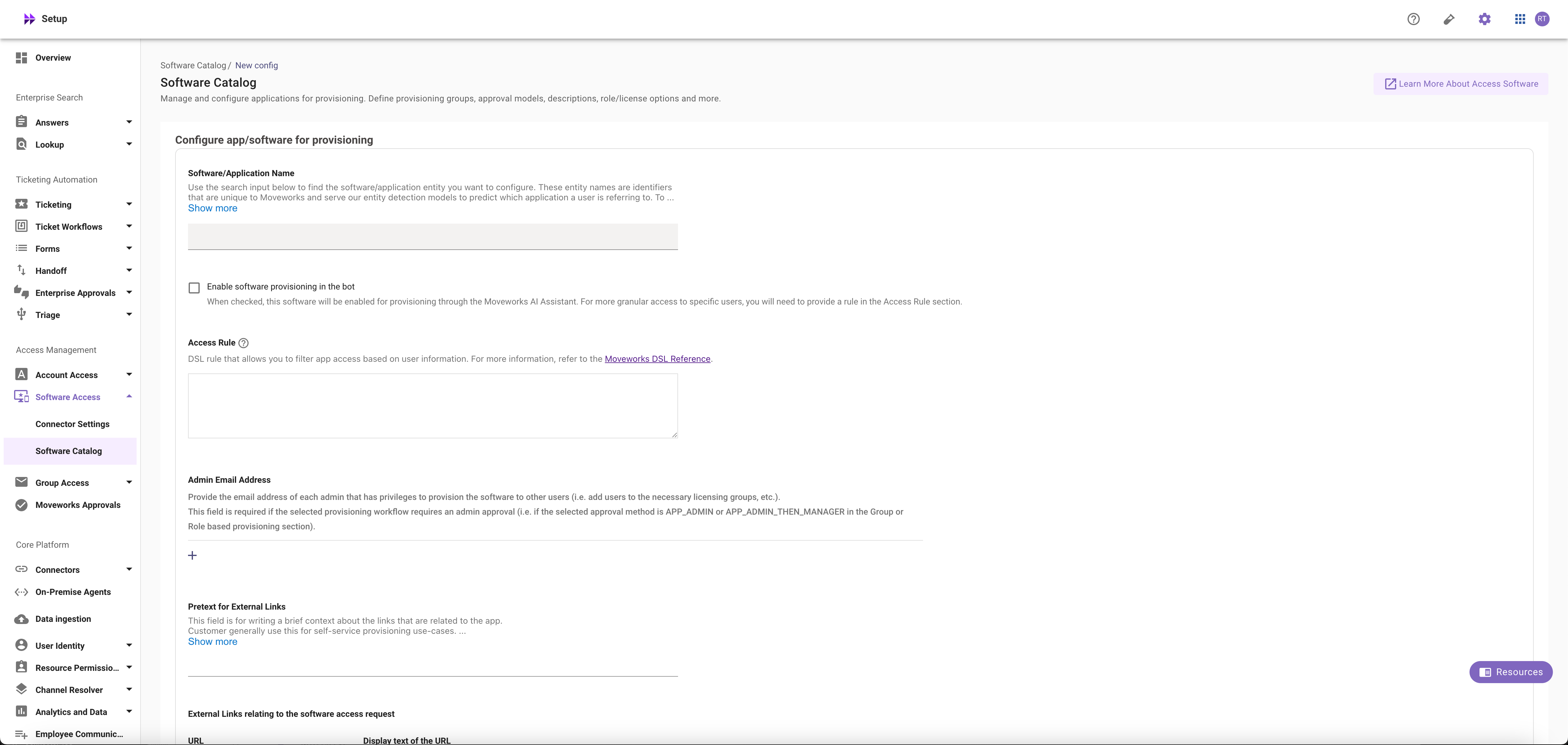 Navigate to Moveworks Setup > Access Software > Software Catalog