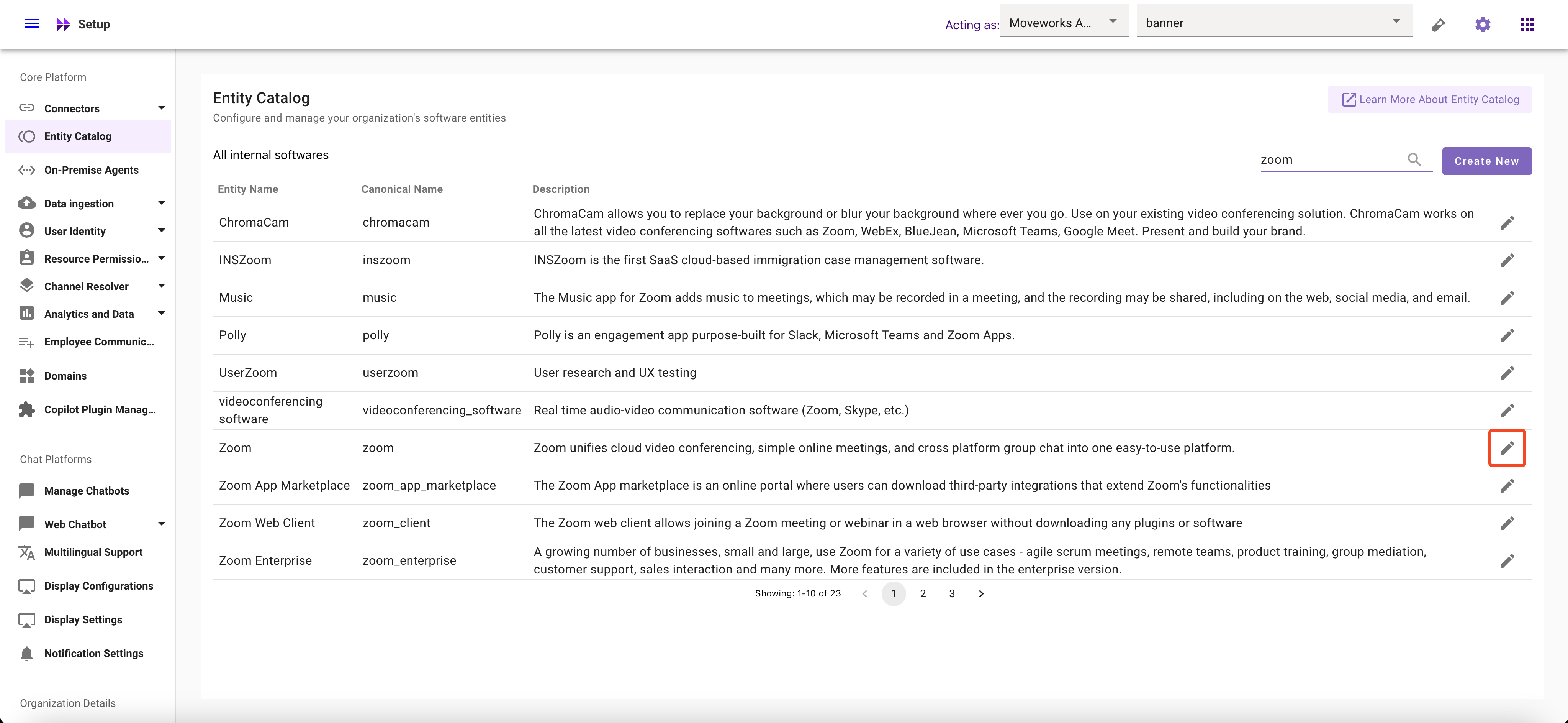 Navigate to Moveworks Setup > Entity Catalog and Click on Edit Button