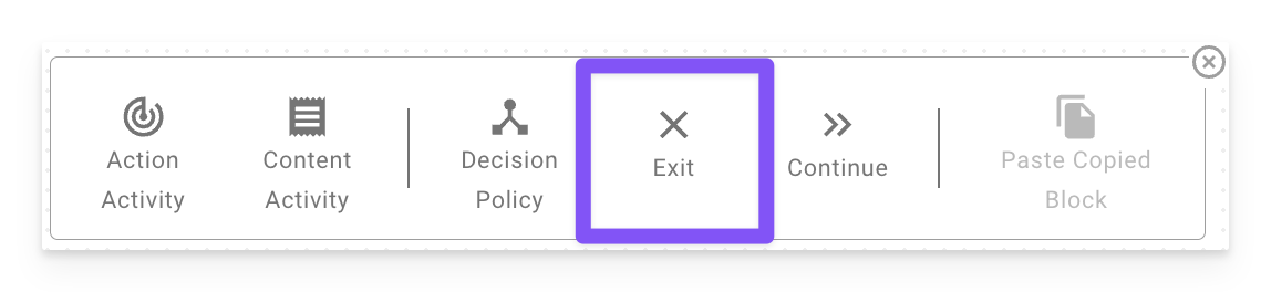 Use Case: Use an Exit Block in a decision policy branch to halt the plugin, such as when an invalid input is detected or a process cannot proceed.