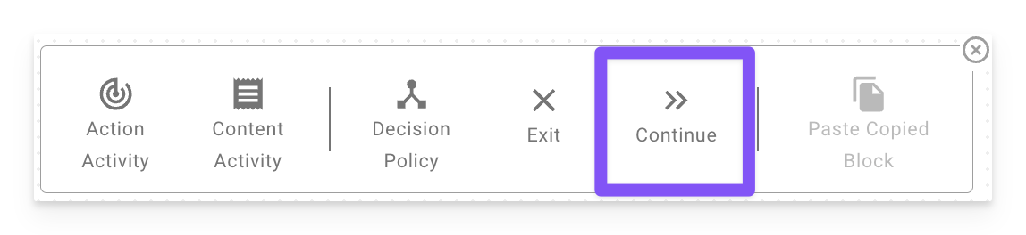 Use Case: Use a Continue Block in a decision policy branch to ensure the plugin continues processing after handling a specific condition, such as logging an event before proceeding.