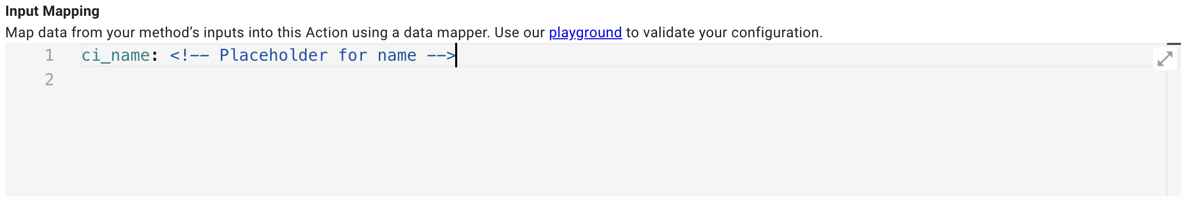 You will now see an “Input Mapping” section. You’ll notice it expects “name” as an input. This is because you are referencing an HTTP action that requires name to be input. The “Placeholder for name” is telling the resolver where to find this input. You’ll see in the next step, we will need to get this from the user as input.