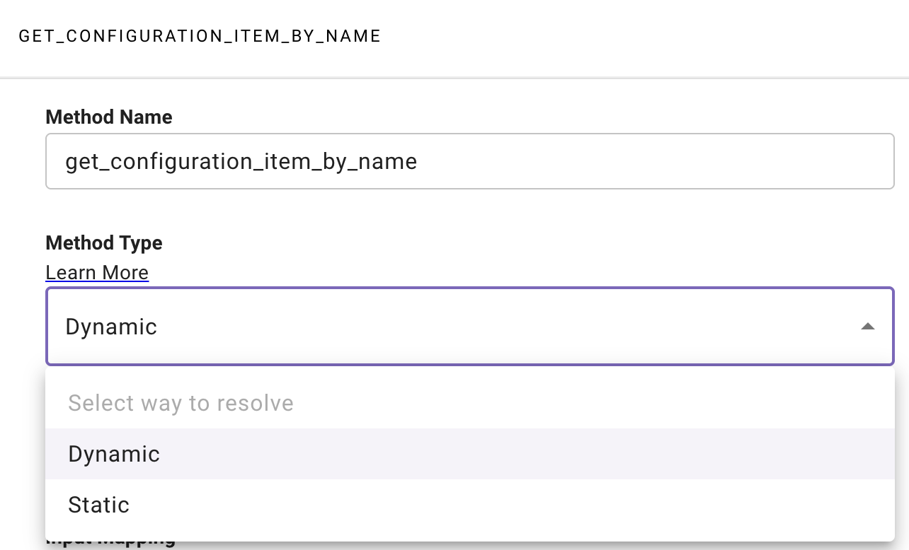 Add a Method Name. This should be descriptive on how we are going to “Resolve” this object. You can use “lookup_account_by_name” or something similar. In the Method Type dropdown, select “Dynamic”.