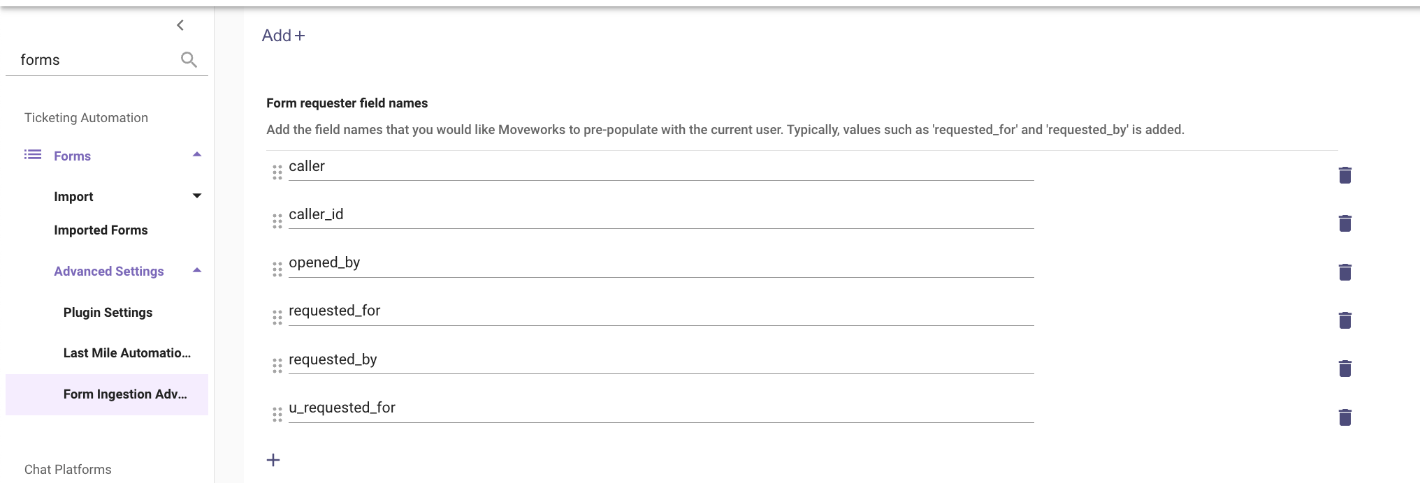 - Moveworks needs access to this endpoint for all form ID’s you would like to display in-chat. Sometimes, customer access control may limit API access to specific forms at this endpoint.