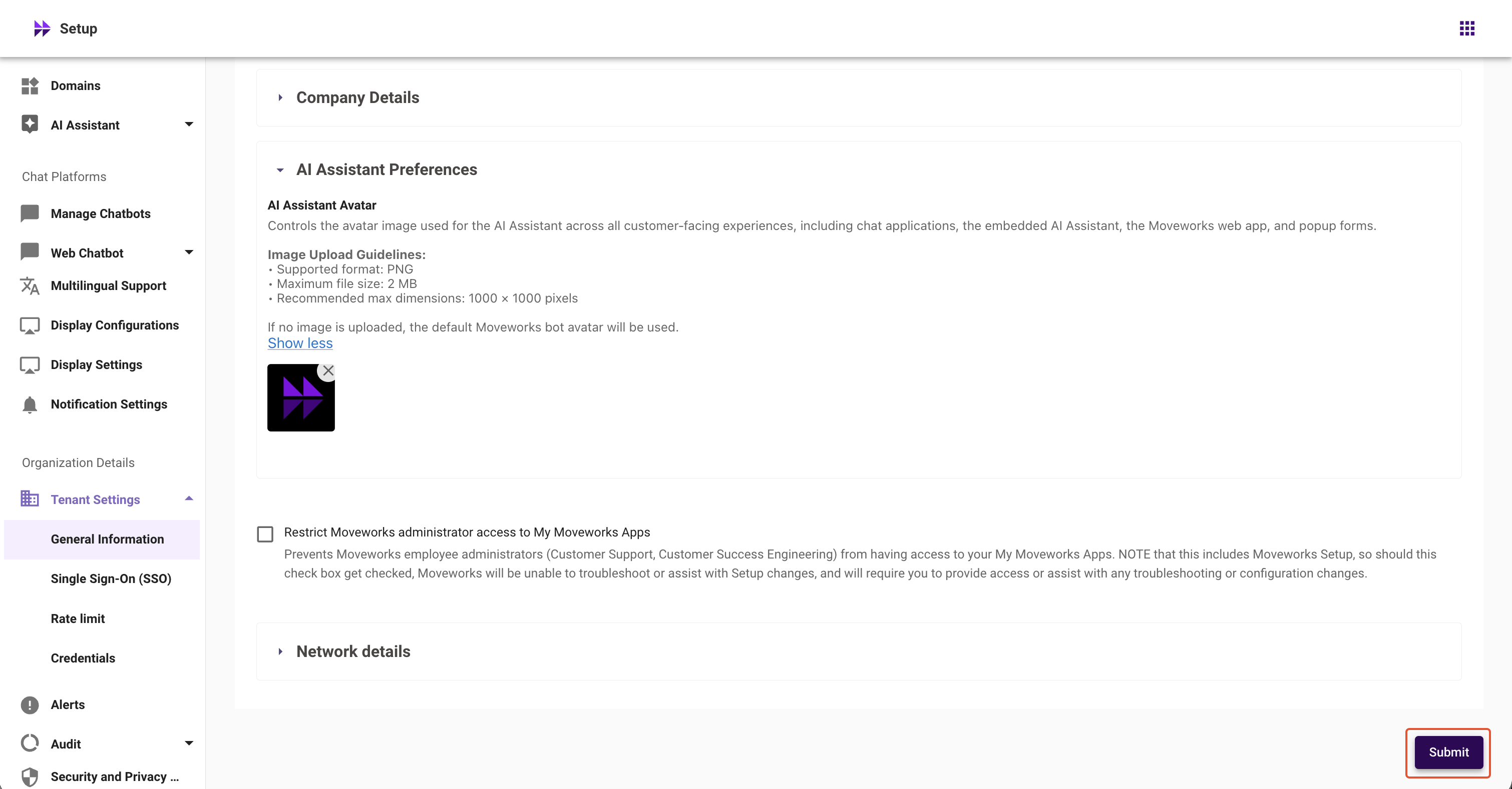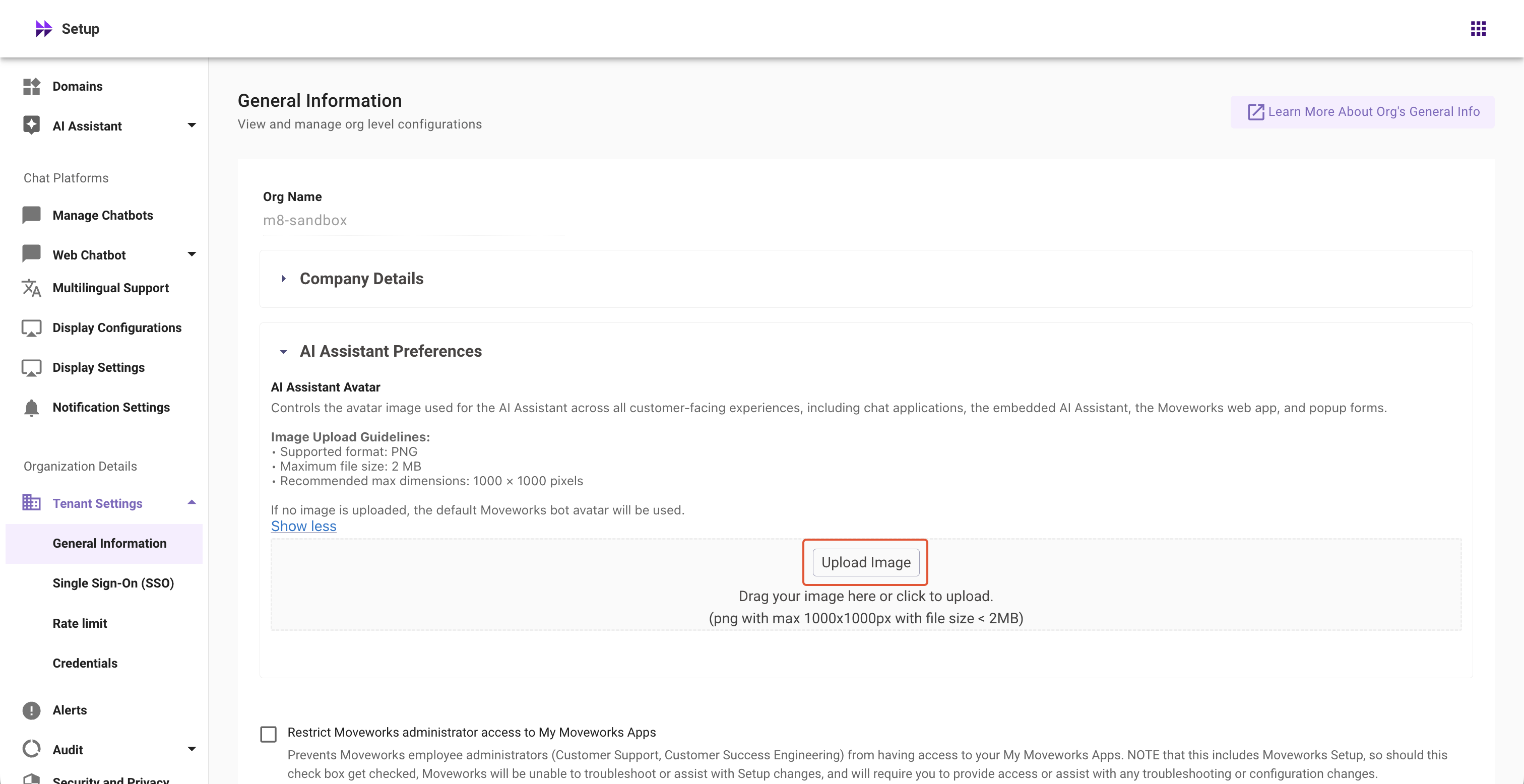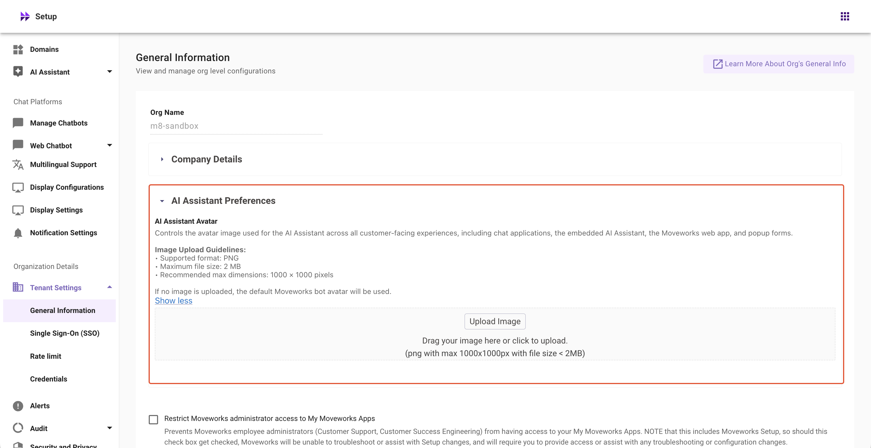 If no image is uploaded, the default Moveworks AI Assistant avatar will be used.