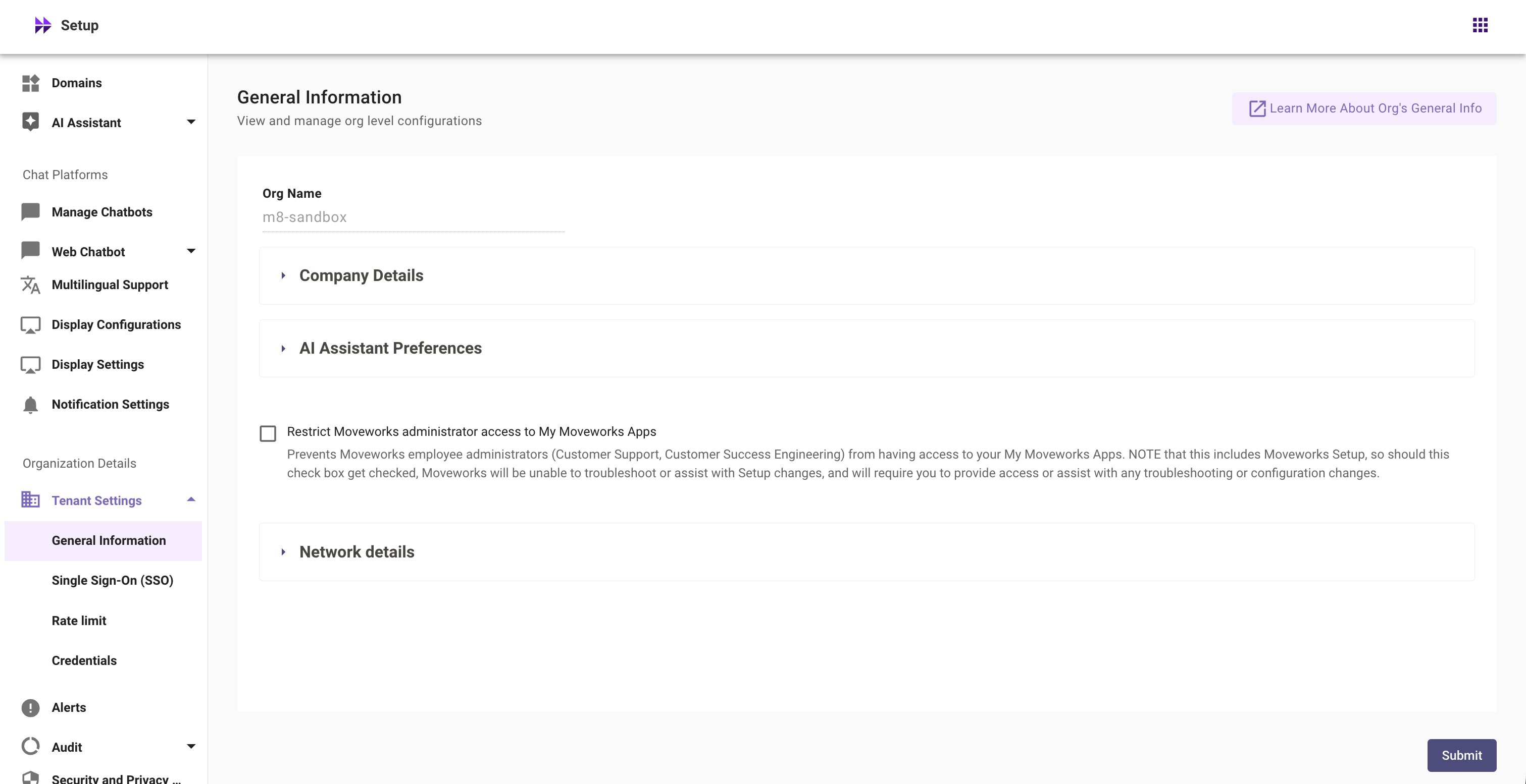- Go to Org Information in Moveworks Setup