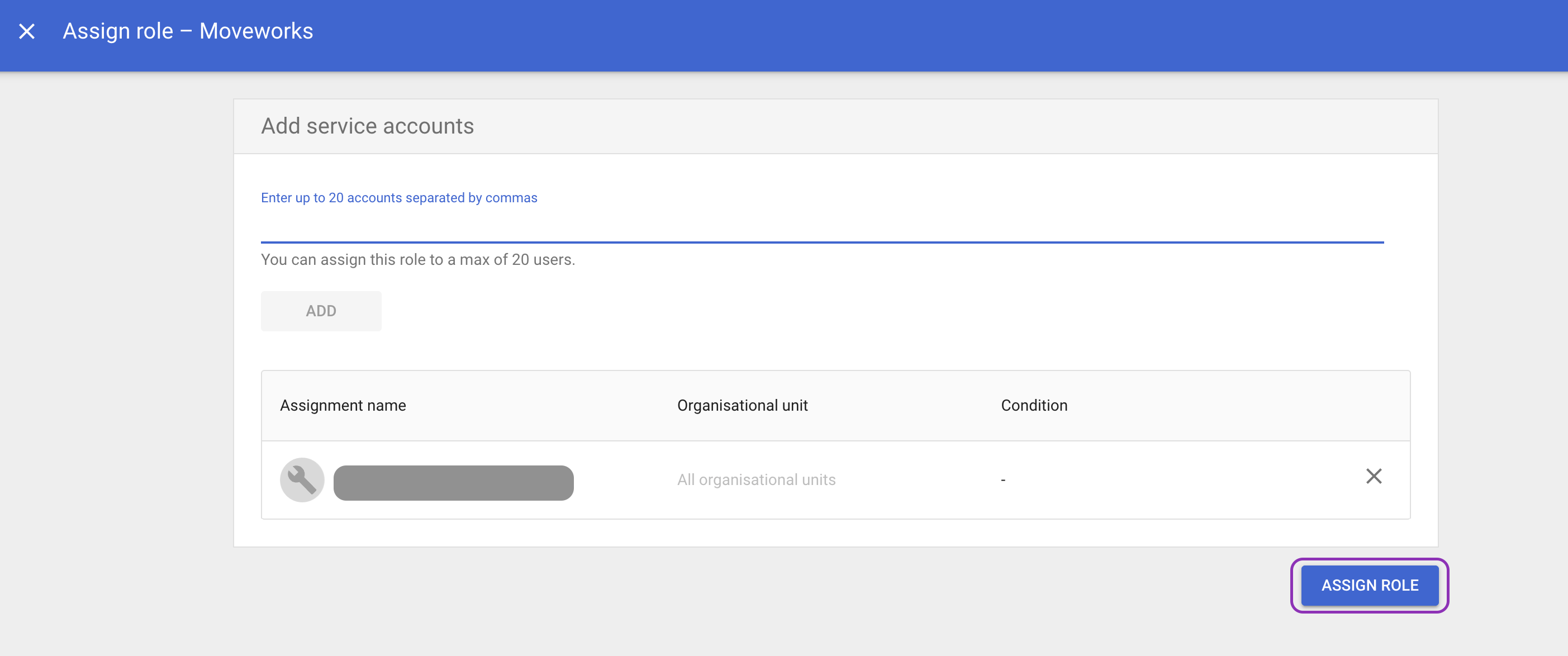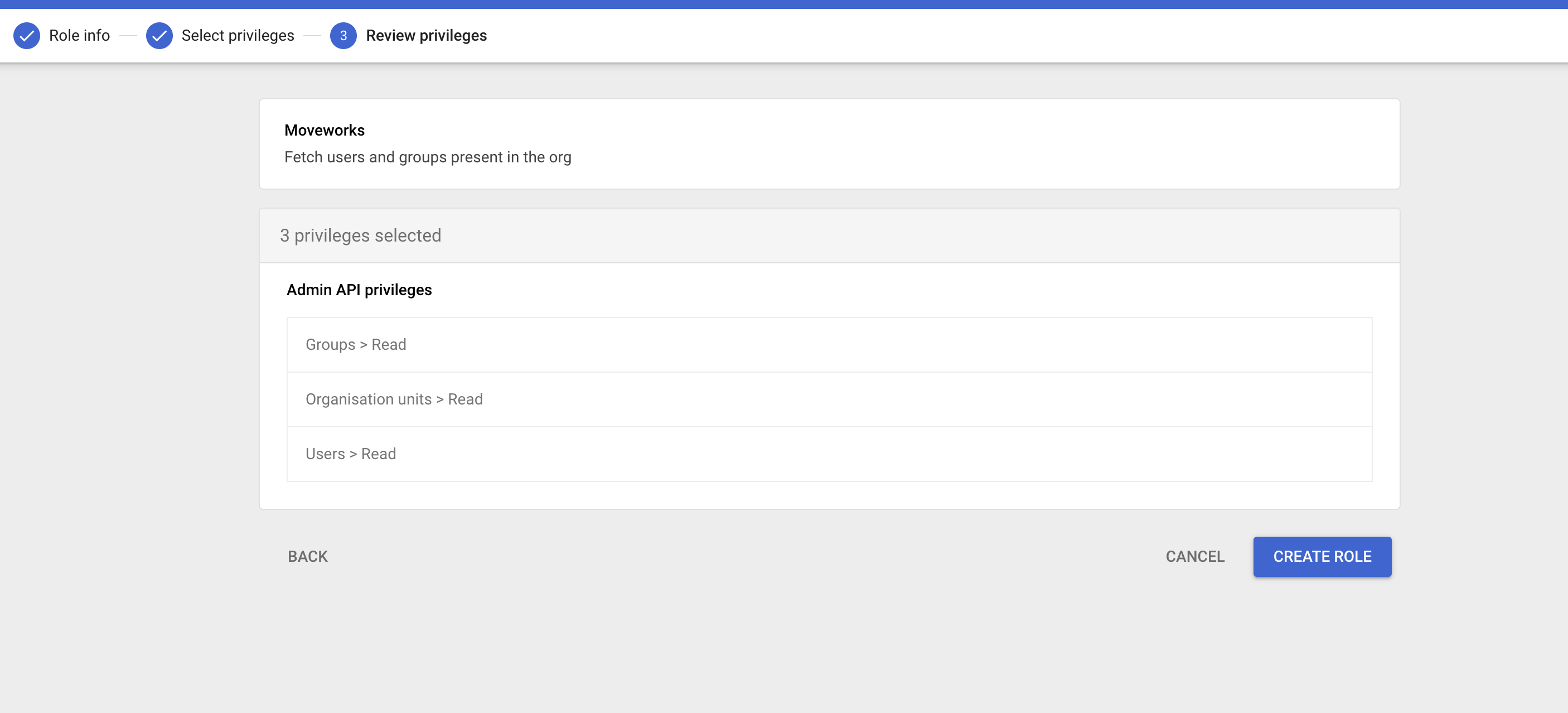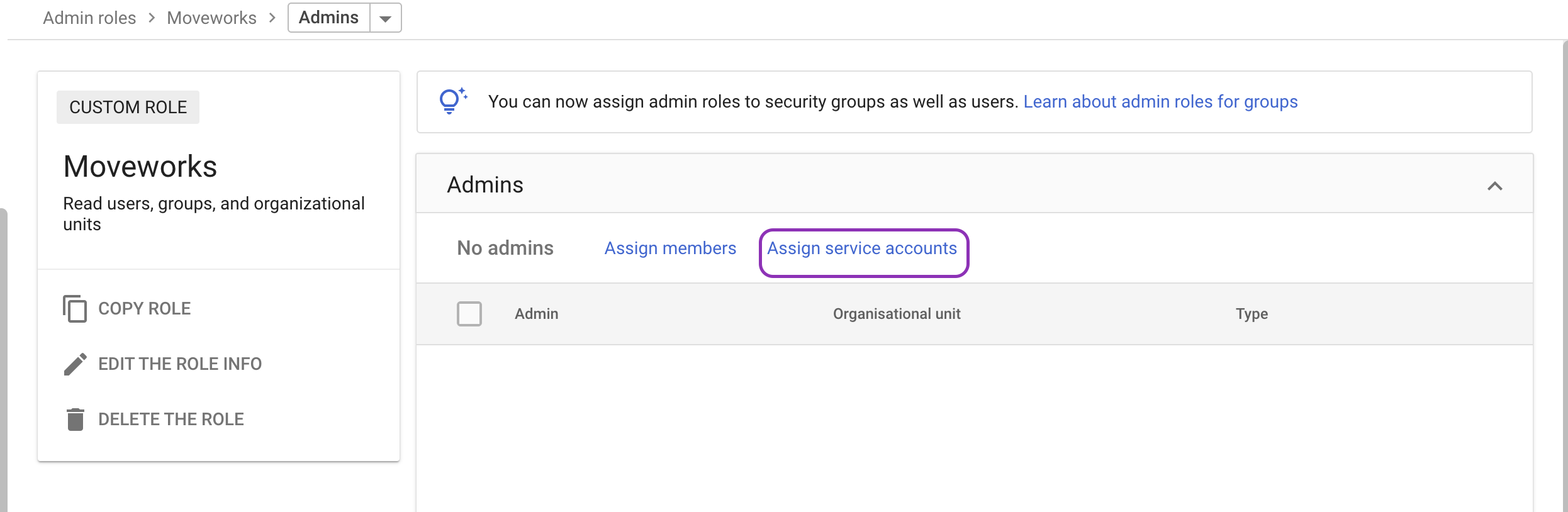users > readin the custom admin role (created following the Moveworks access requirements guide) - Ensure the Service Account has permissions to read user information