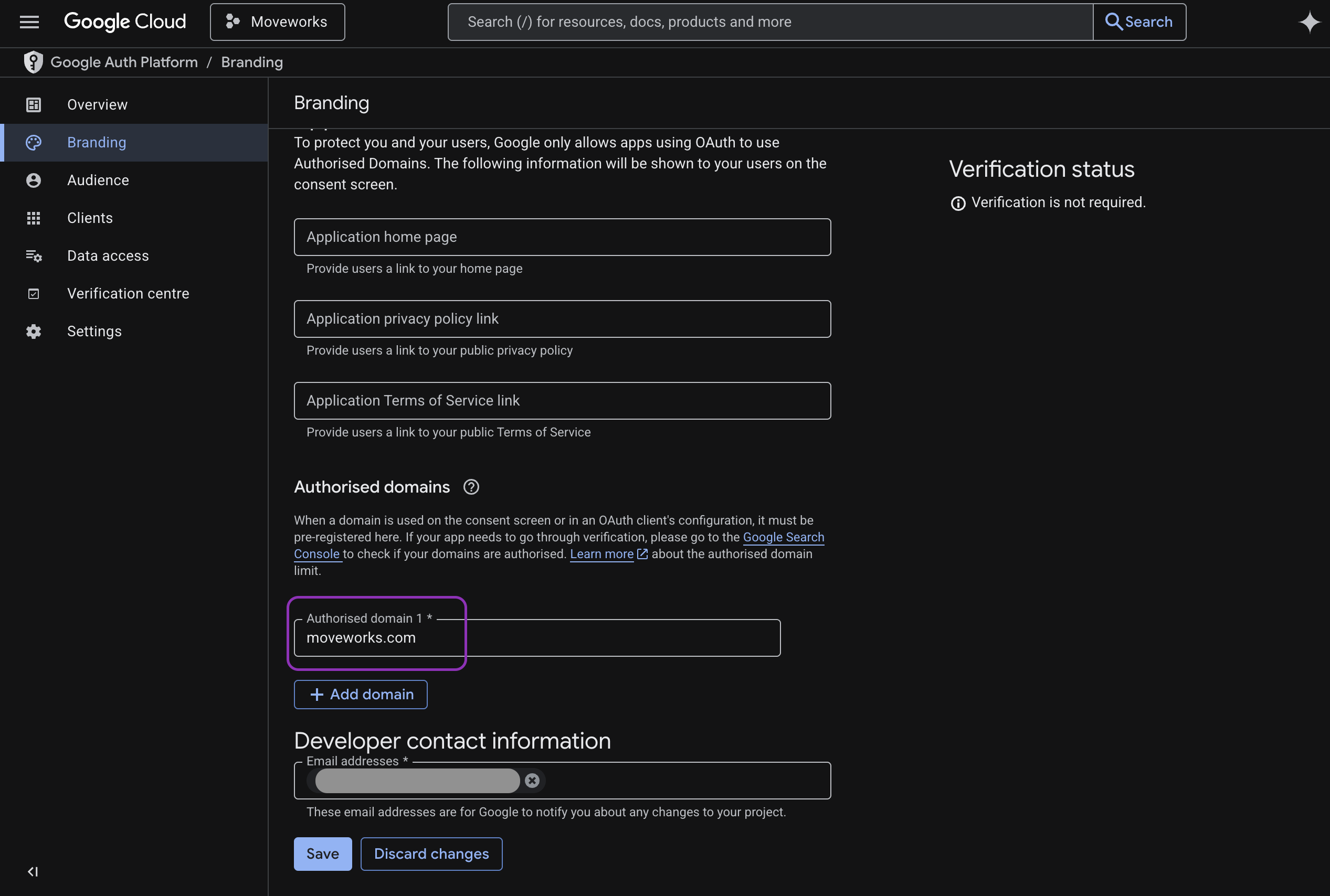 Click +Add Domain, then add moveworks.com as an authorized domain.