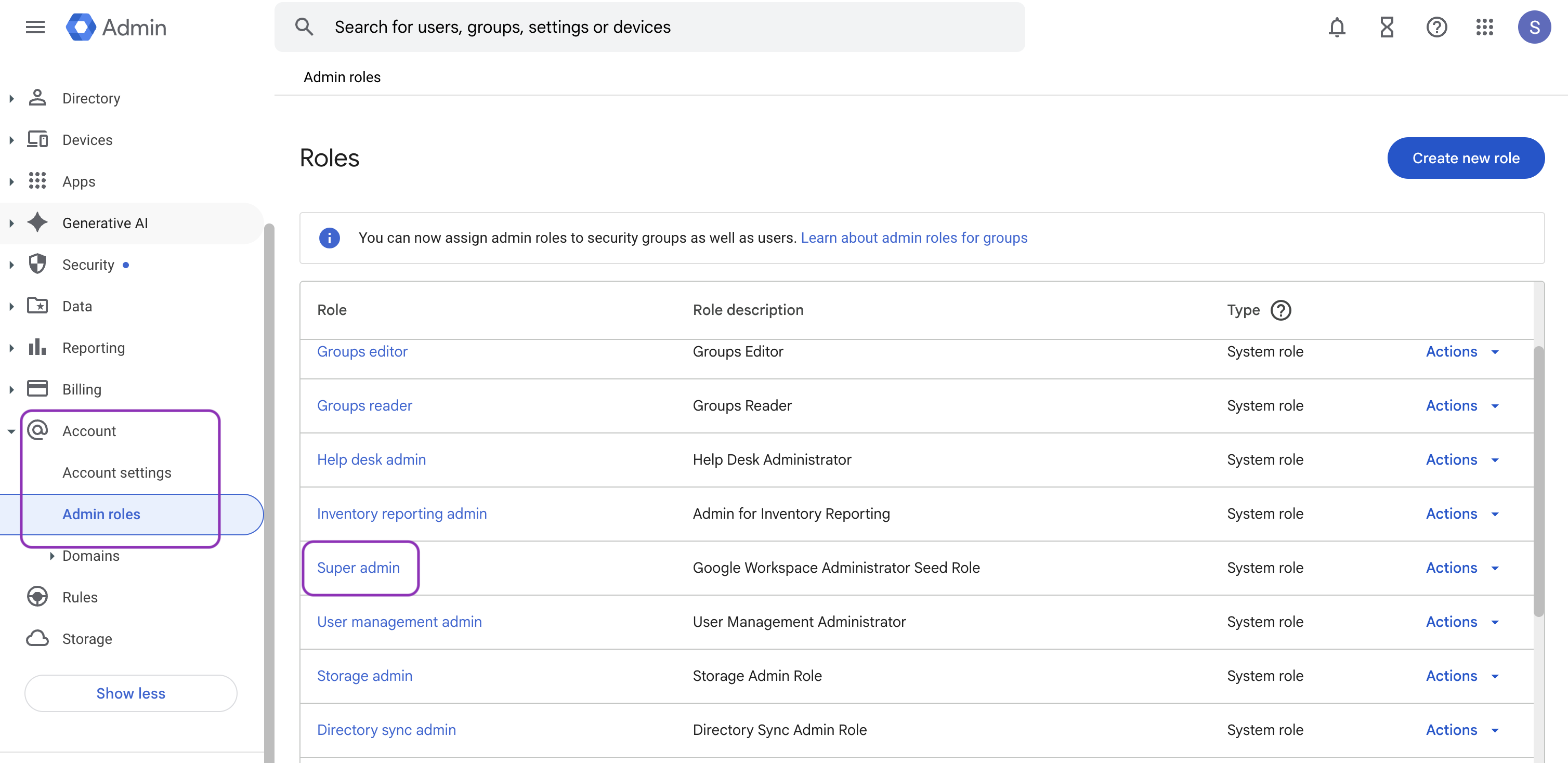- Google Admin Console admin access so you can create a Custom Super Admin (for OAuth) and a custom admin role (for the Service Account).