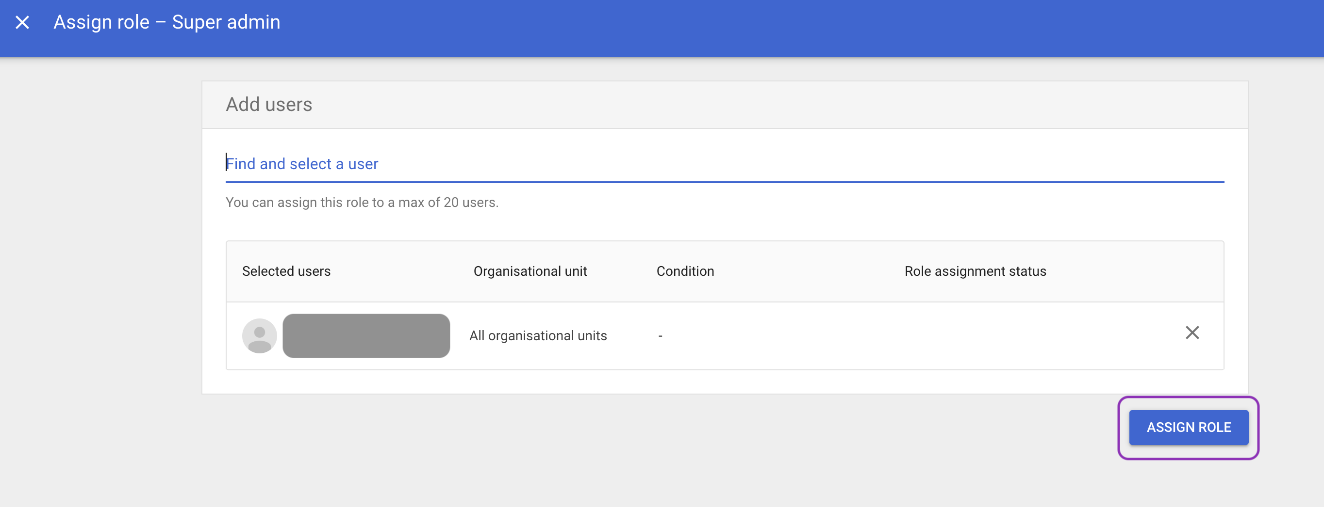 Click Assign users, enter the user’s sign-in email and click Assign role.