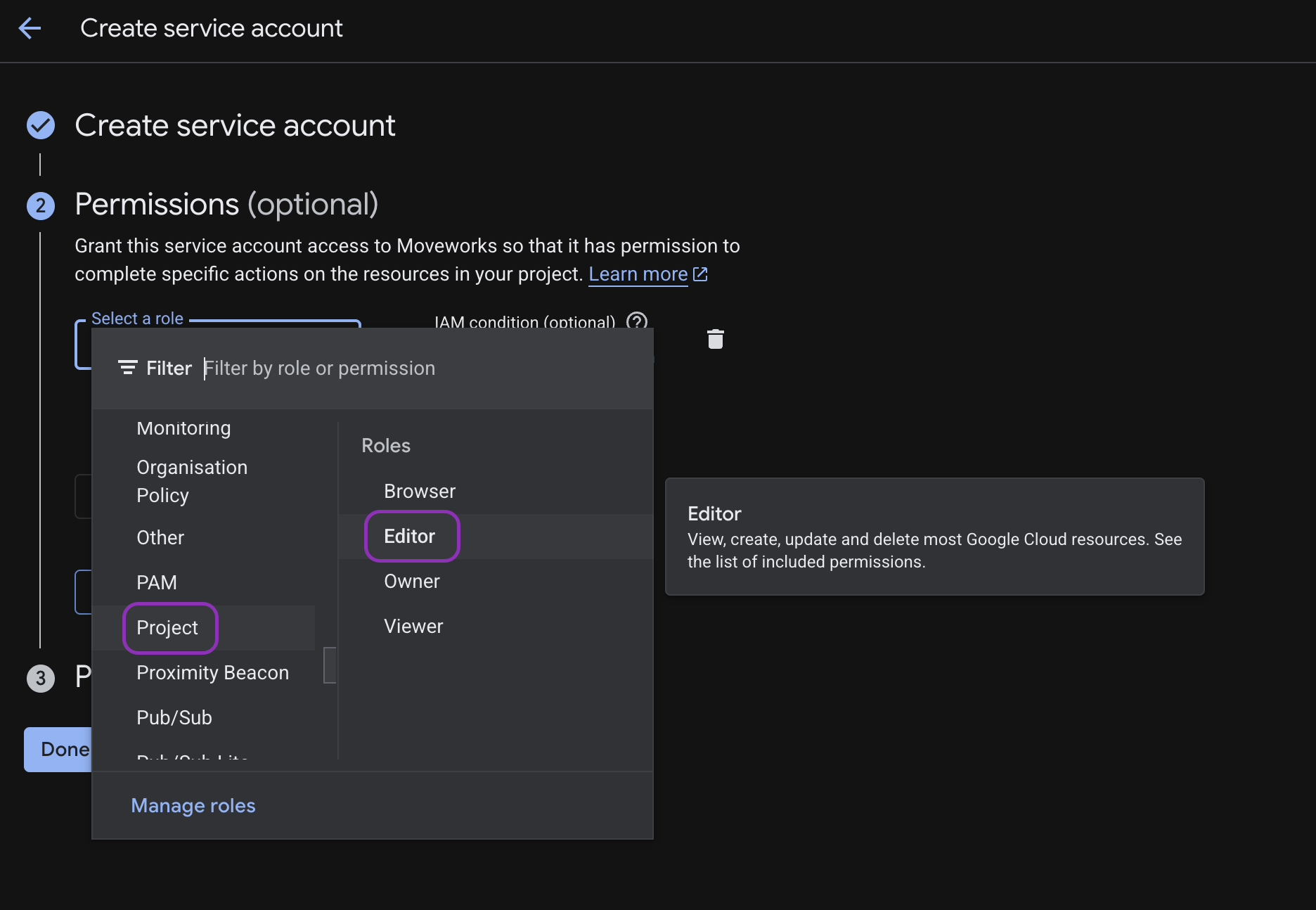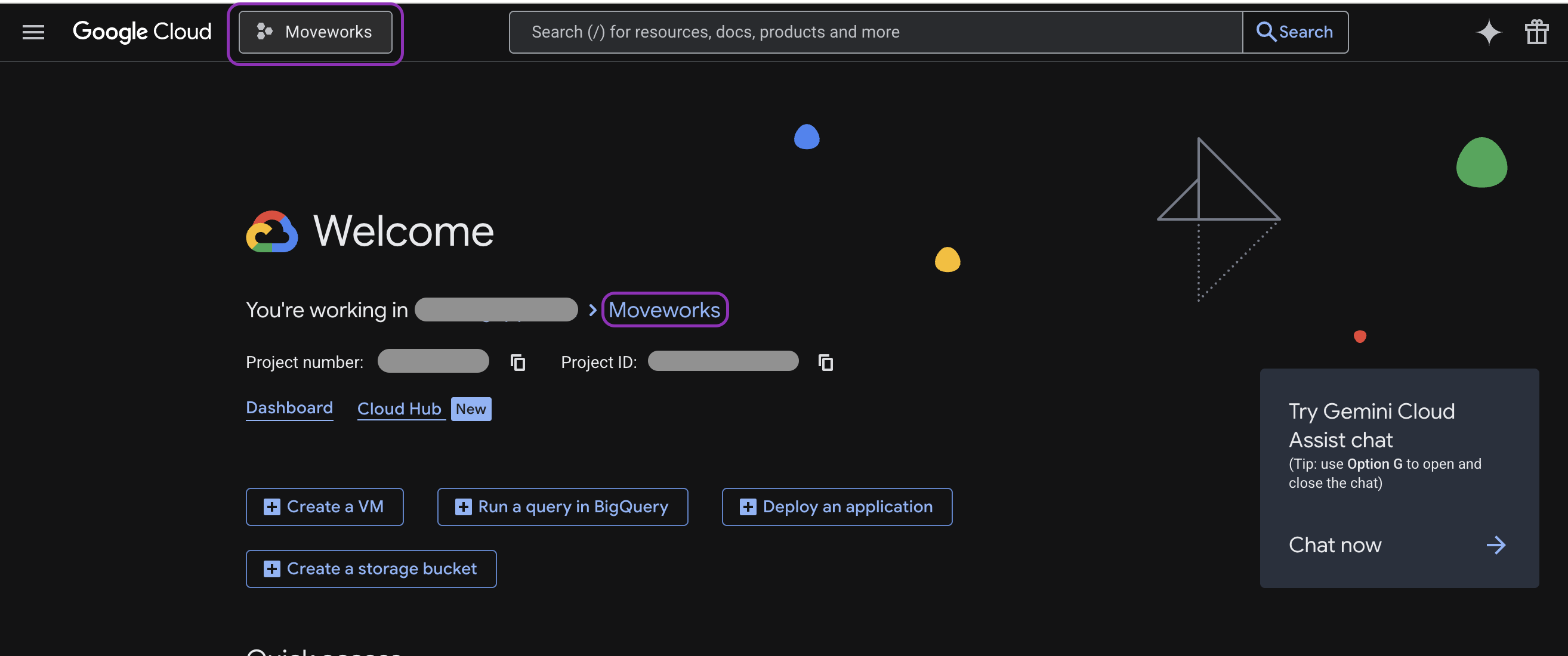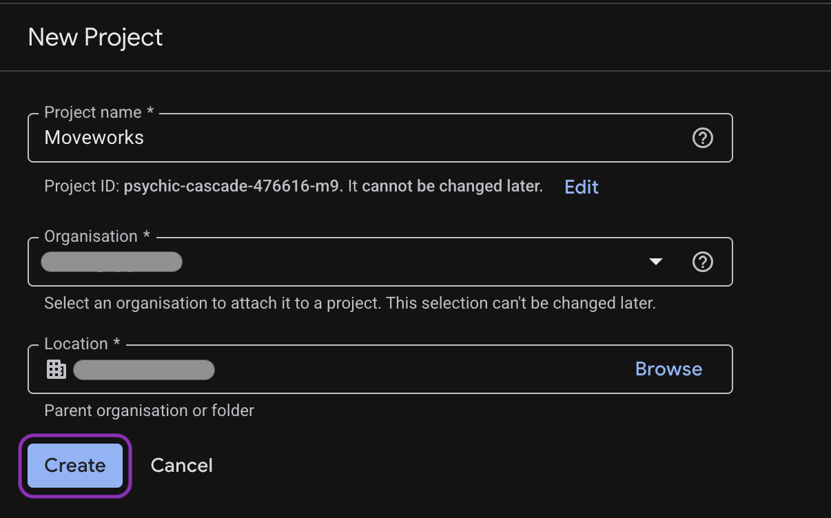 Enter a project name (for example, Moveworks), select your organization and click Create.