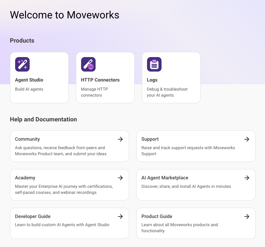 - From labs.moveworks.com, click on the the tile called “Agent Studio (Developer Labs)"
