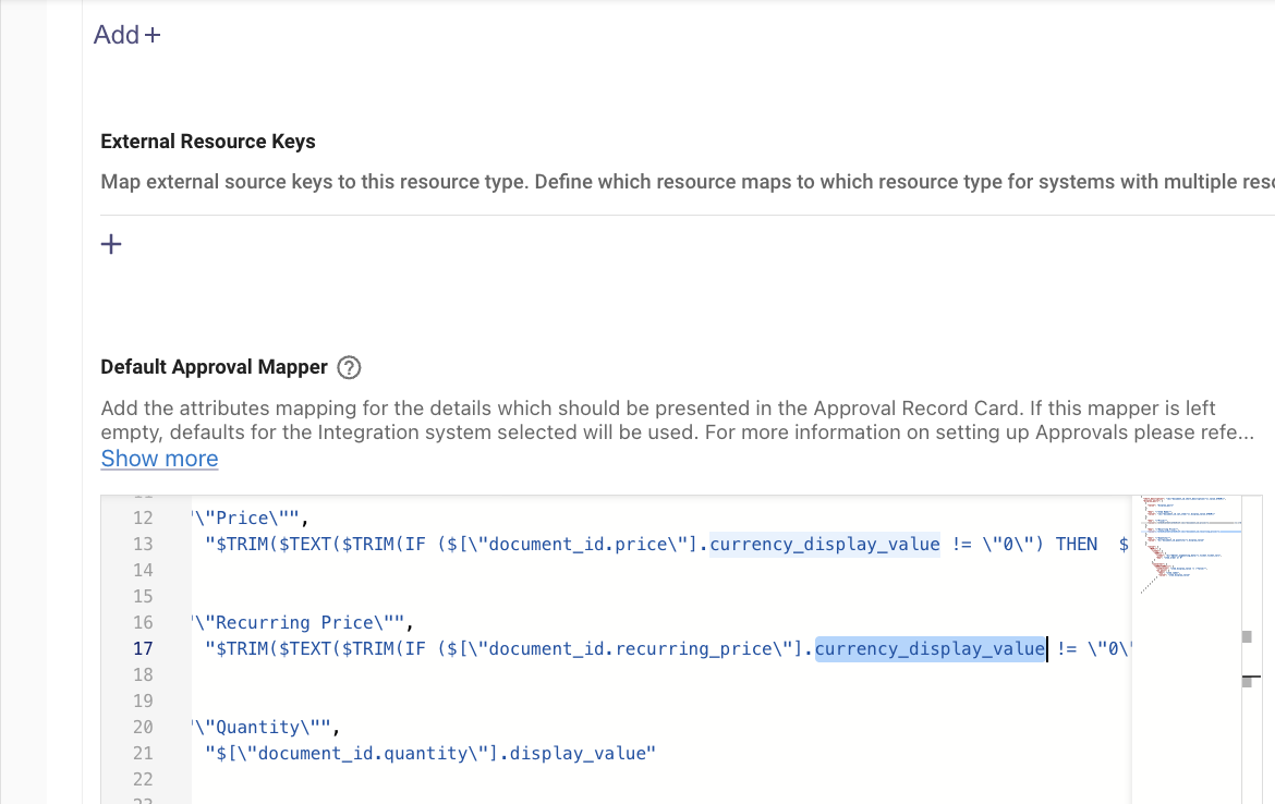 - Update the Default Approval Mapper to use the field {price-variable}.currency_display_value- This attribute automatically displays both the correct currency and amount for the catalog item submitted by the requester.