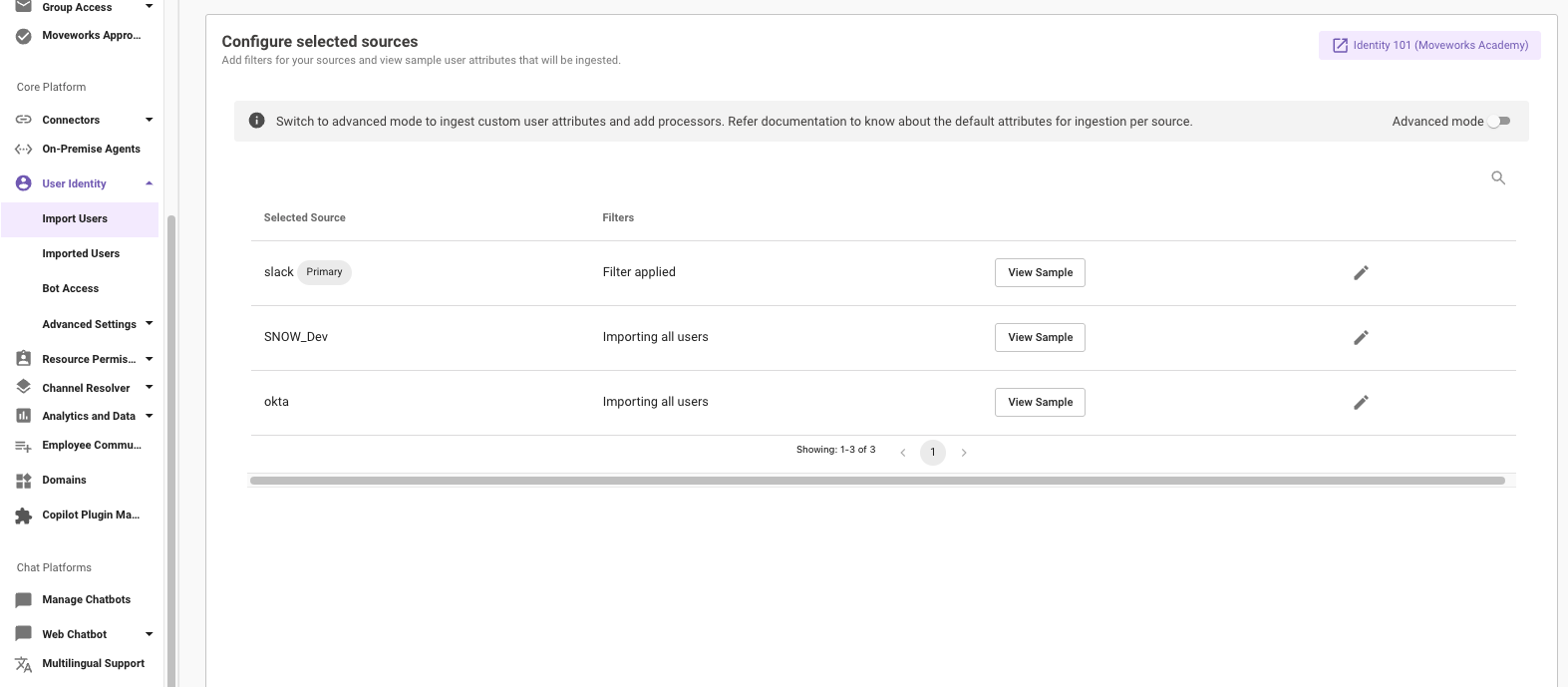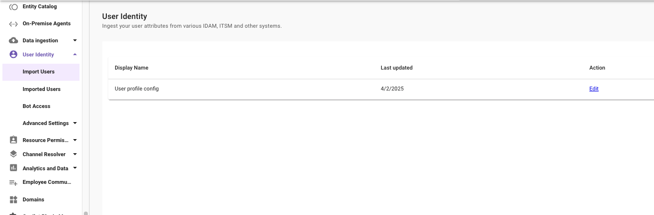 - Click Edit on the existing user ingestion settings.