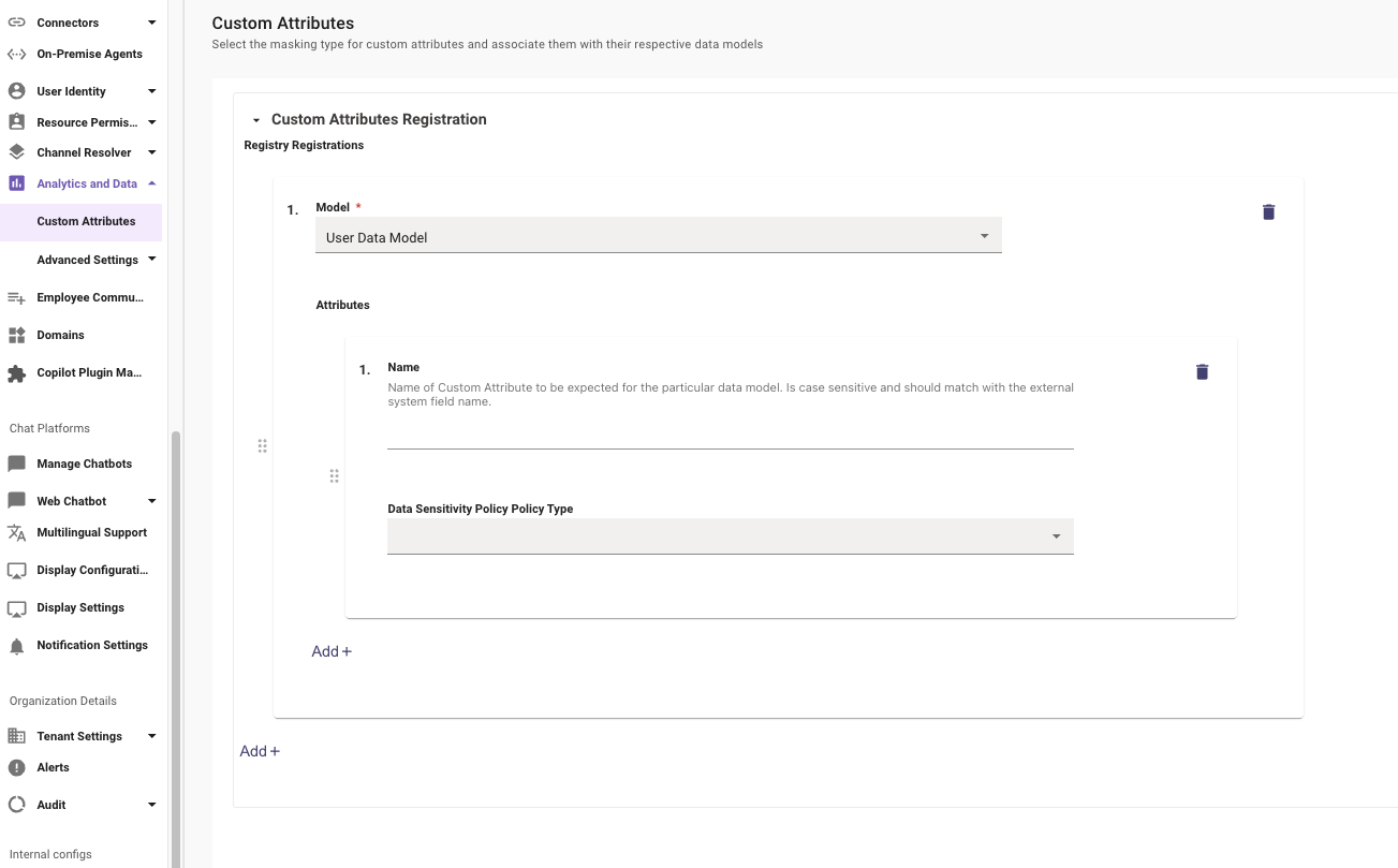 - Click on the Custom Attributes Registration toggle.