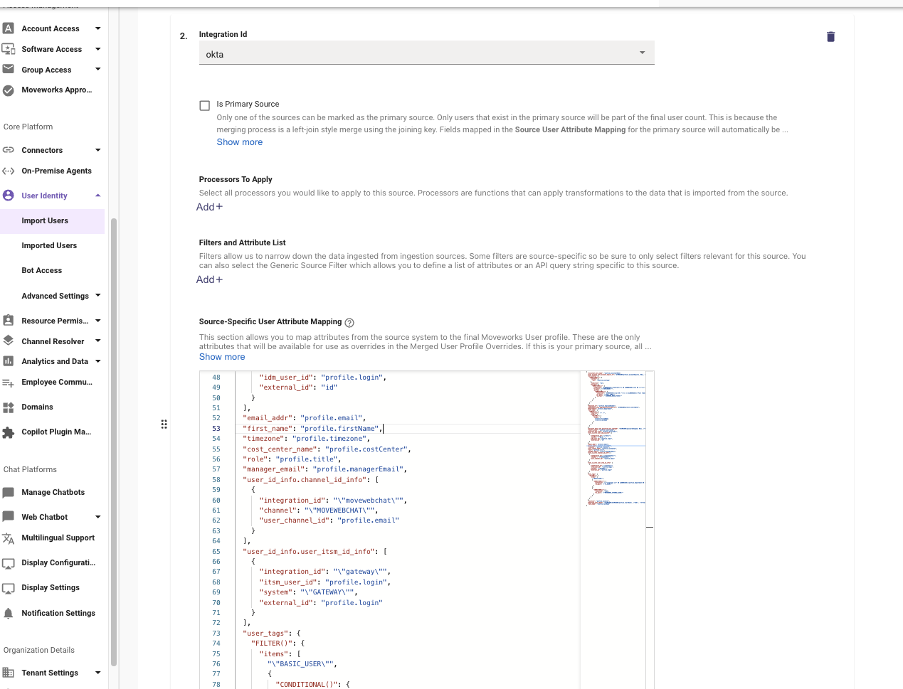 - Navigate to the identity system settings that the custom attribute is to be sourced from and click into the Source-Specific User Attribute Mapping.