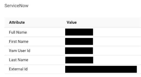 In this case if Itsm User Id or _External Id _is empty for this user, then all actions that involve ServiceNow will not work as expected in the AI Assistant.