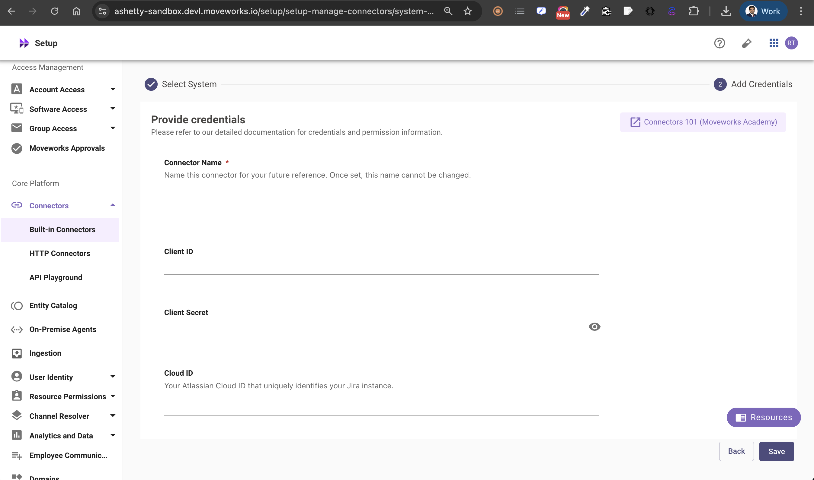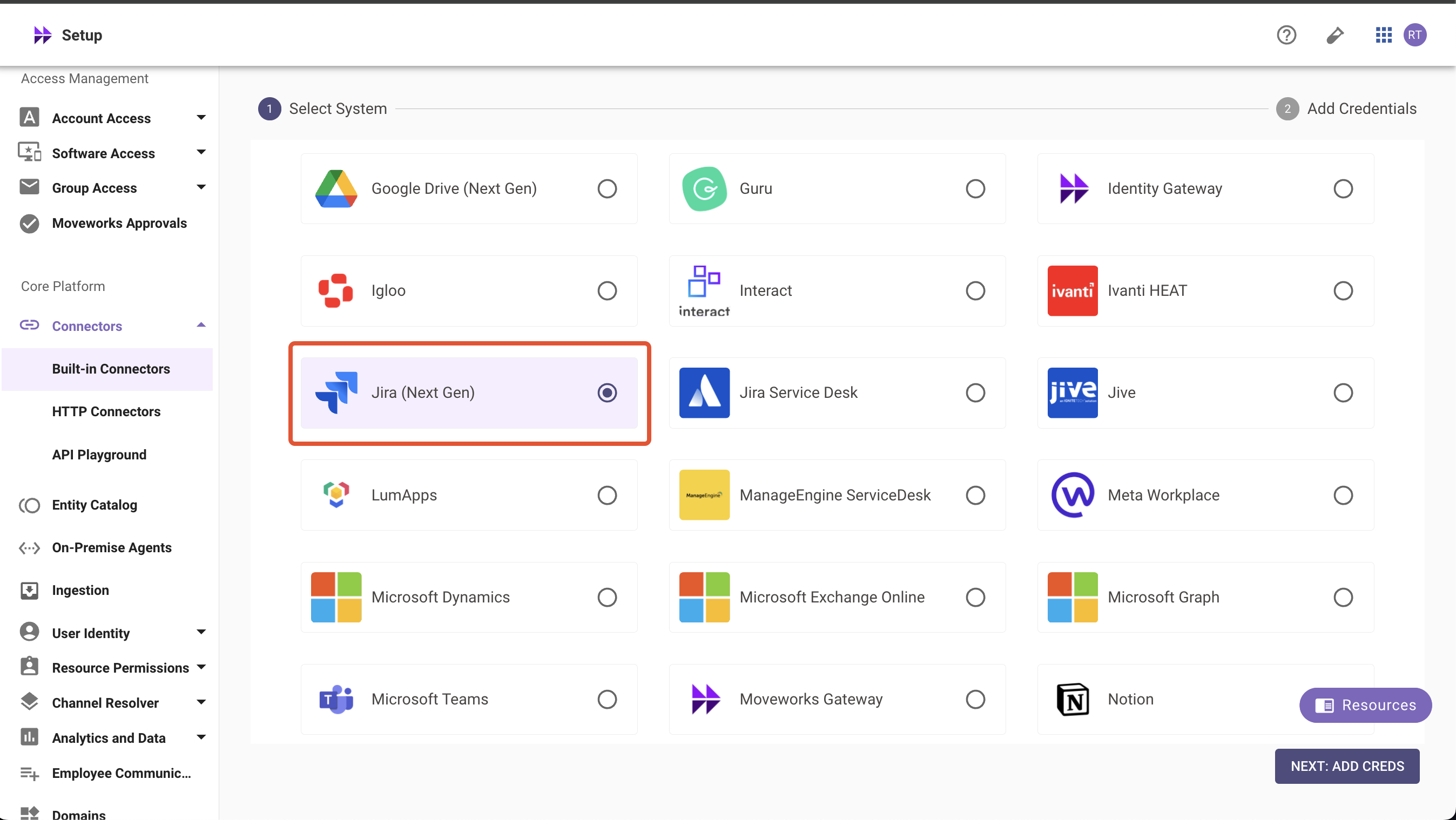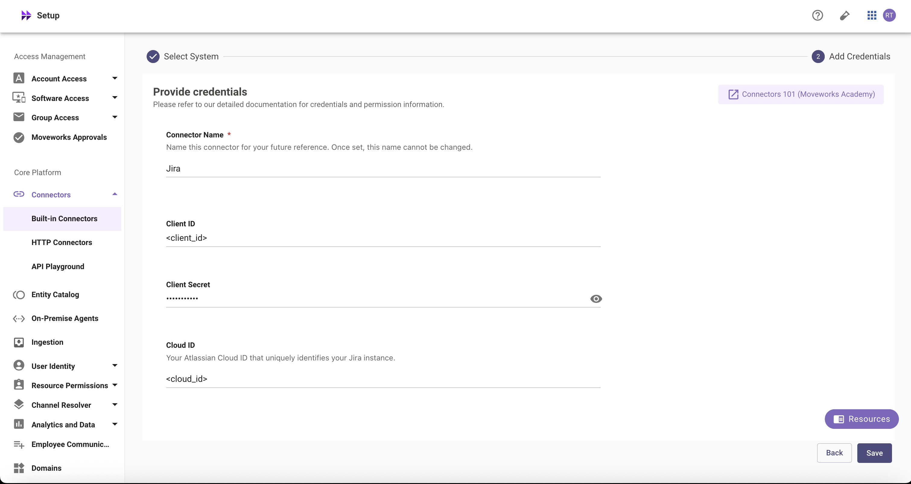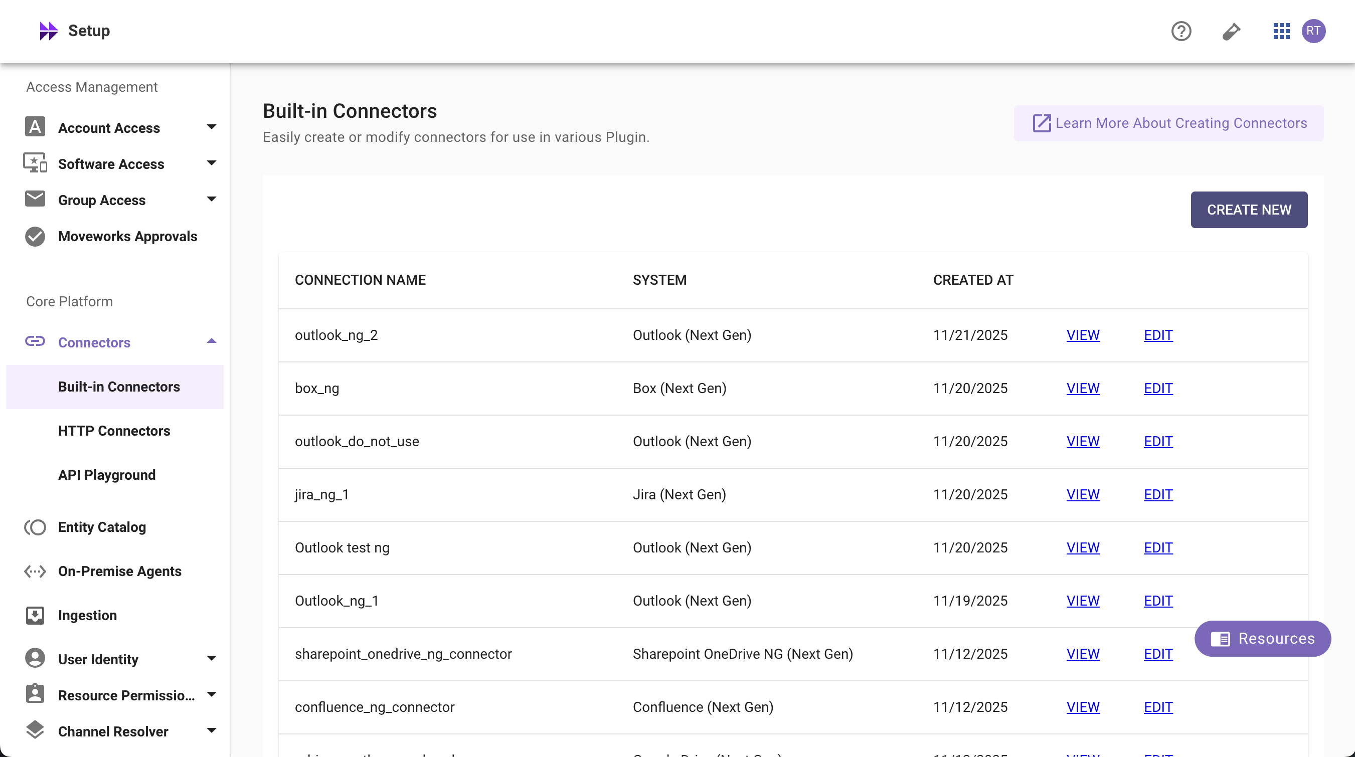 Navigate to Moveworks Setup > Connectors > Built-in Connectors