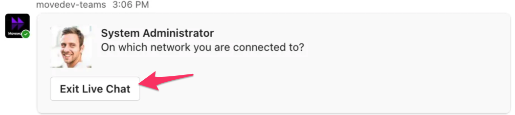 To connect to a live agent, a user can ask the Moveworks AI Assistant directly (e.g. āchat with a live agentā) then the following will happen: