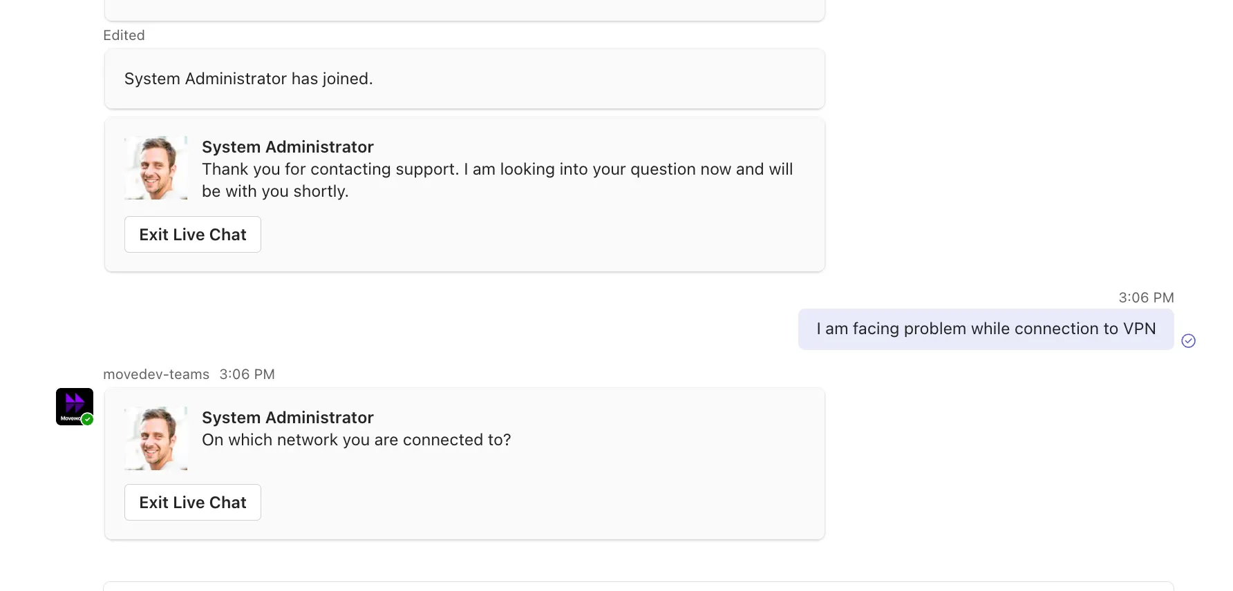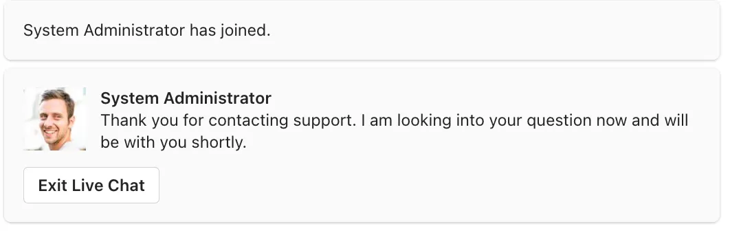 - A user can end the chat by clicking on the "Exit Live Chat" button.