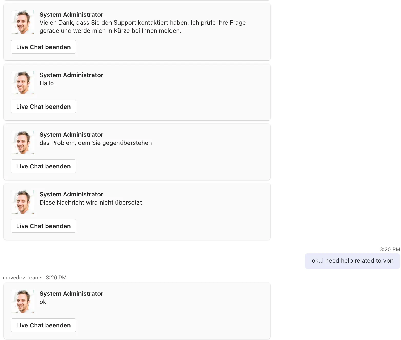 - Moveworks messagesĀ will be displayed without any agent attribution.