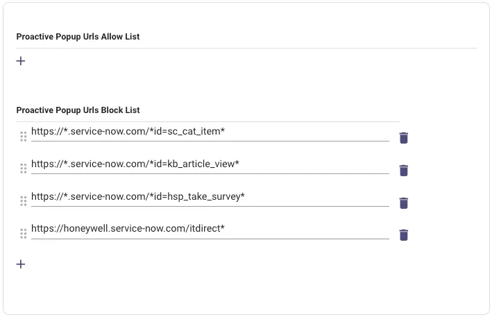 - Proactive Popup Urls Allow List