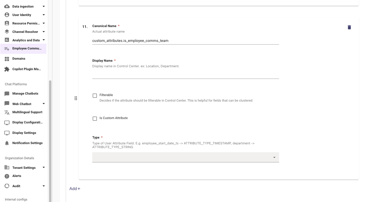- Display Name is the display name that will be seen within the Employee Communications interface and can be named whatever is most relevant to the organization.