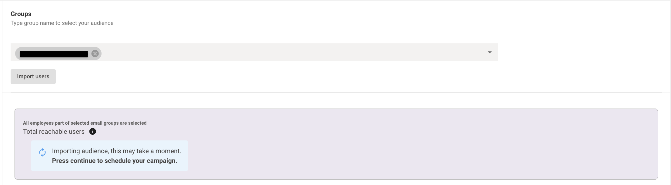 Please ensure to click on Import users so it was fetch the users from the Group and provide a count of Total reachable users.